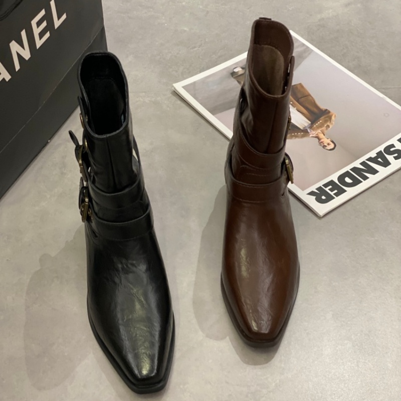 舒适增高复古气质粗跟舒适短靴女靴 马丁靴女鞋 短靴女2025新款 时尚