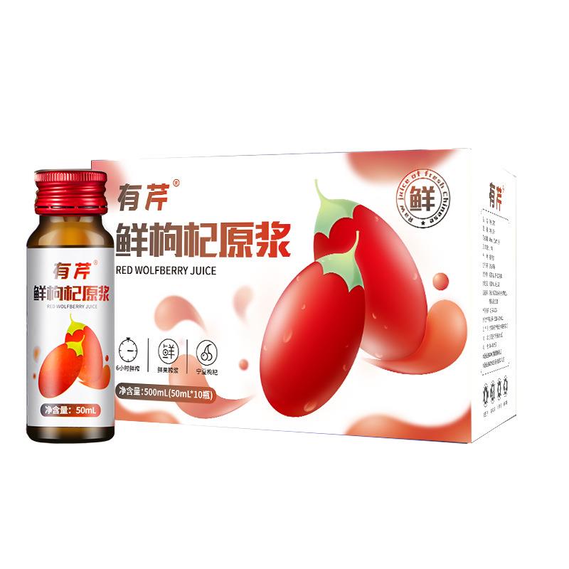 宁夏鲜枸杞原浆 10瓶鲜榨枸杞原浆 现货中宁枸杞原汁便携50ml