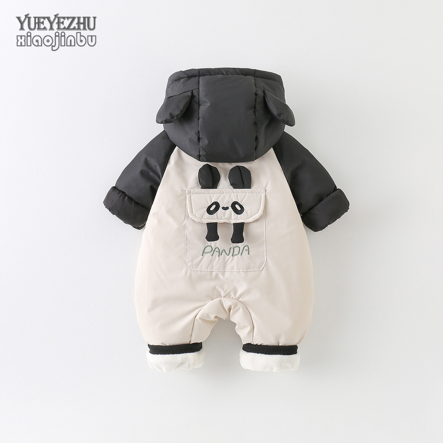 婴儿加绒加厚连体衣秋冬韩版 冲锋衣外套潮 卡通洋气男宝宝衣服冬装