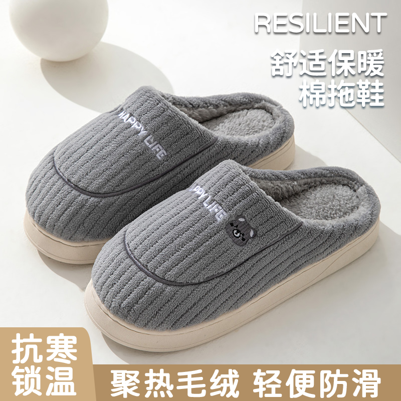 室内家居家防滑厚底踩屎感毛毛绒保暖情侣拖鞋 秋冬季 女 男士 棉拖鞋