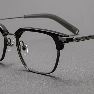 超轻纯钛半框近视眼镜框男款 可配度数镜片专业网上配防蓝光眼睛架