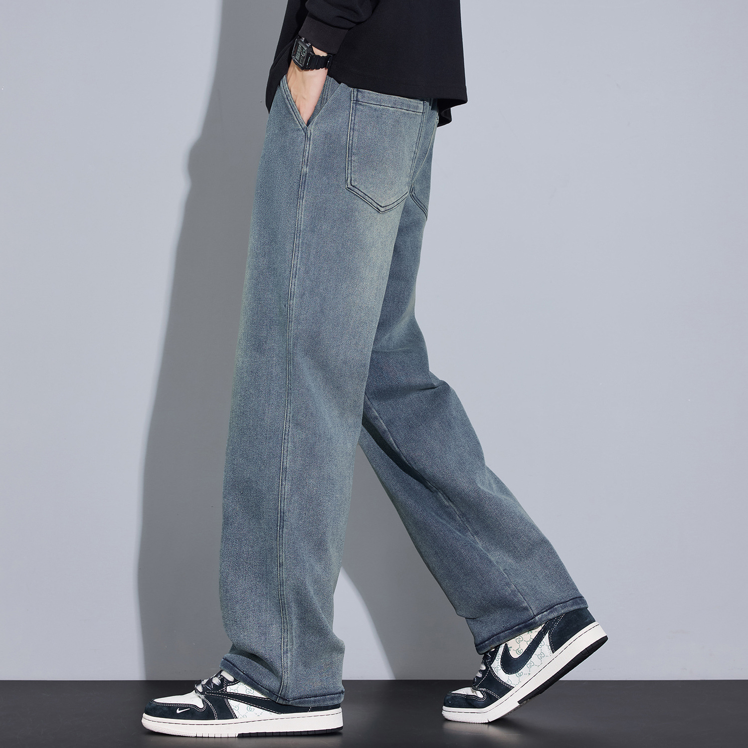 羊毛 弹力休闲长裤 蚕丝 2025秋冬加绒加厚防风裤 天丝 五只白鹅