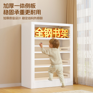 钢制家用书柜儿童专用落地书架靠墙一体置物架客厅简易铁艺收纳架
