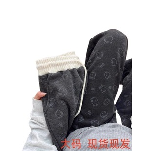 显瘦阔腿裤 大码 小个子窄版 女2025春秋新款 韩系可爱小猫印花糯米裤