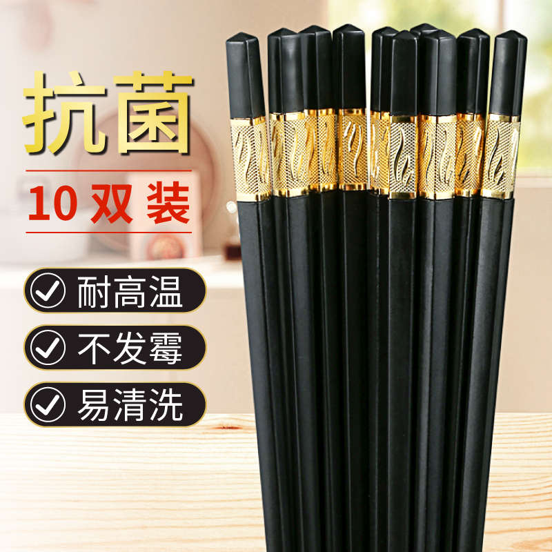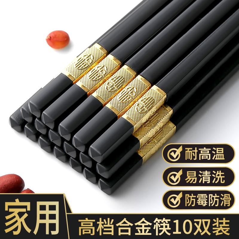 高档家庭合金筷子无漆不易发霉抗菌耐高温防霉餐厅防滑 五双装