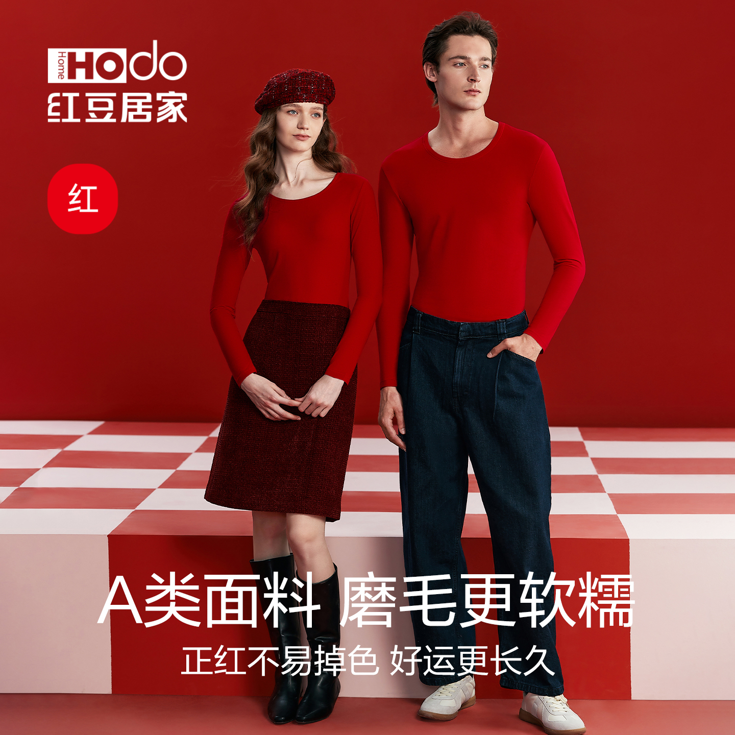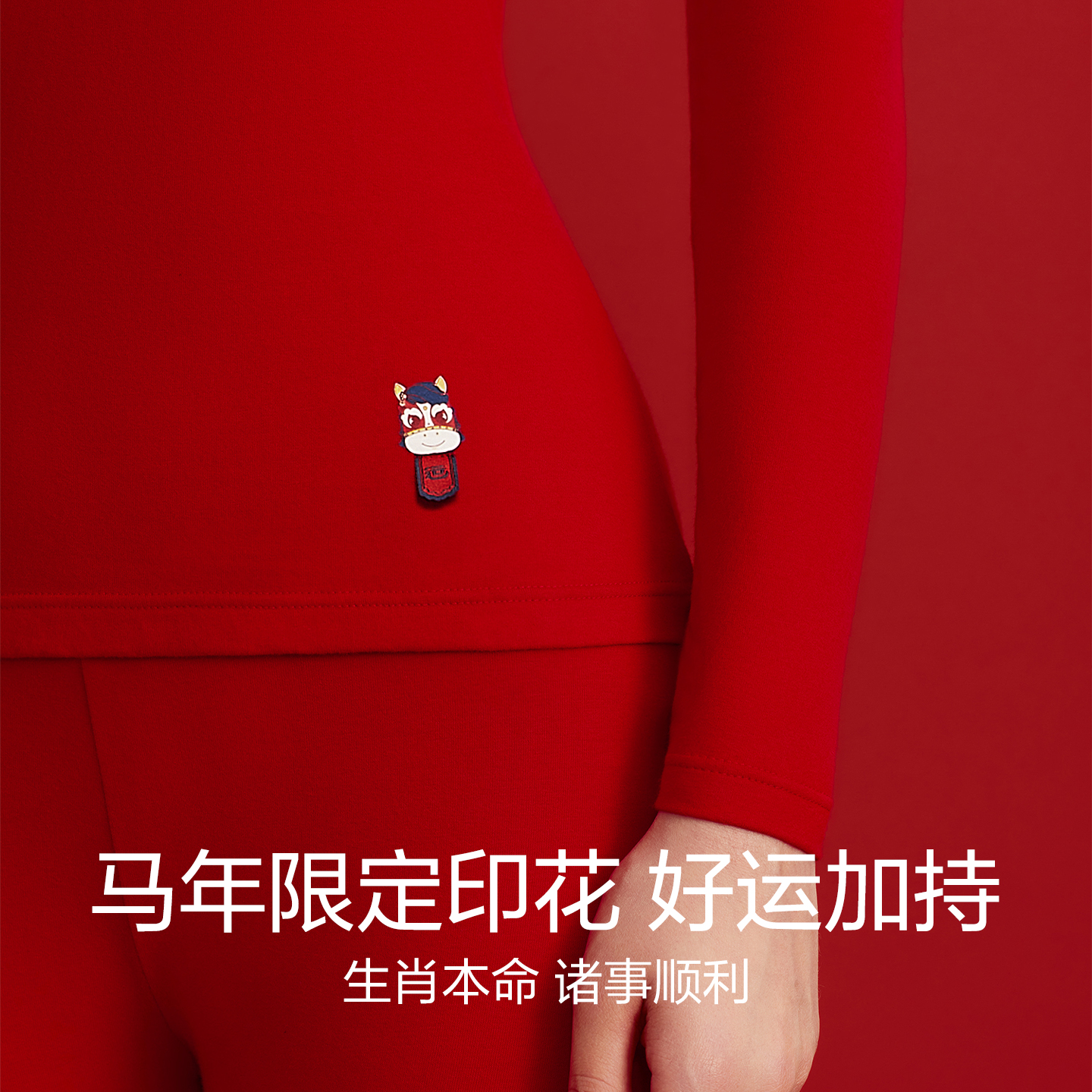 红豆红马年本命年红色情侣保暖内衣套装 秋衣A类棉磨毛女 秋冬薄款