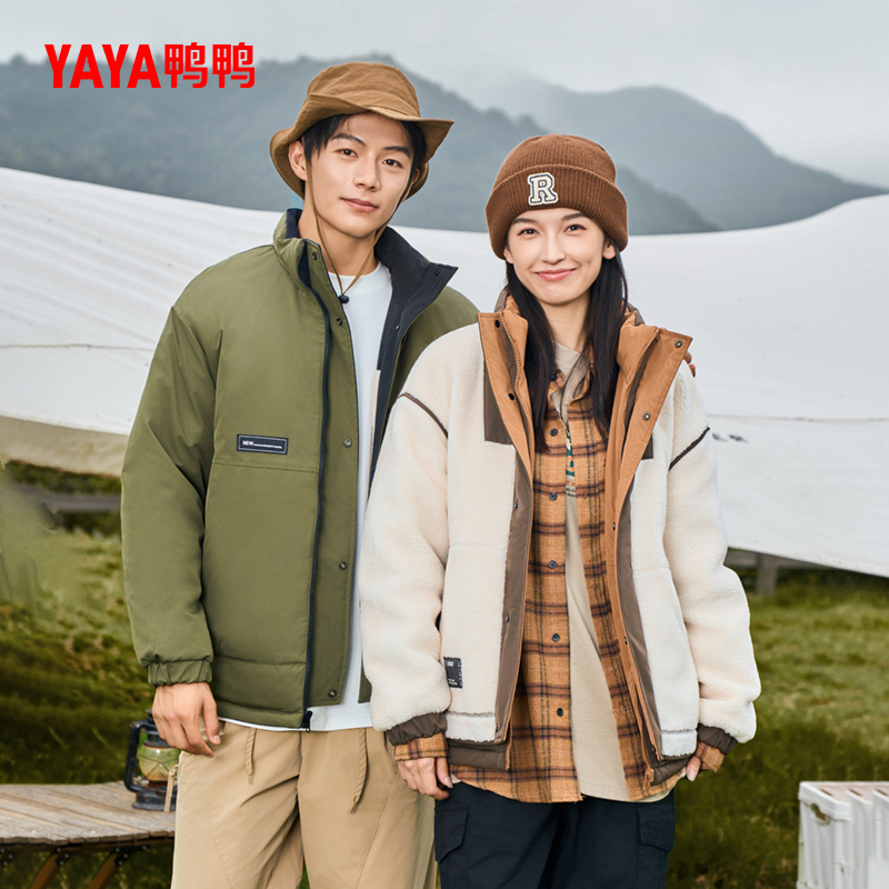 情侣加厚立领防水面包服外套男 运动三防羽绒服女25冬季 骆驼火炉