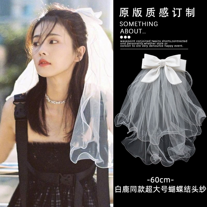 李一桐同款 蝴蝶结求婚小头纱发夹结婚拍照领证登记蓬蓬纱新娘发饰