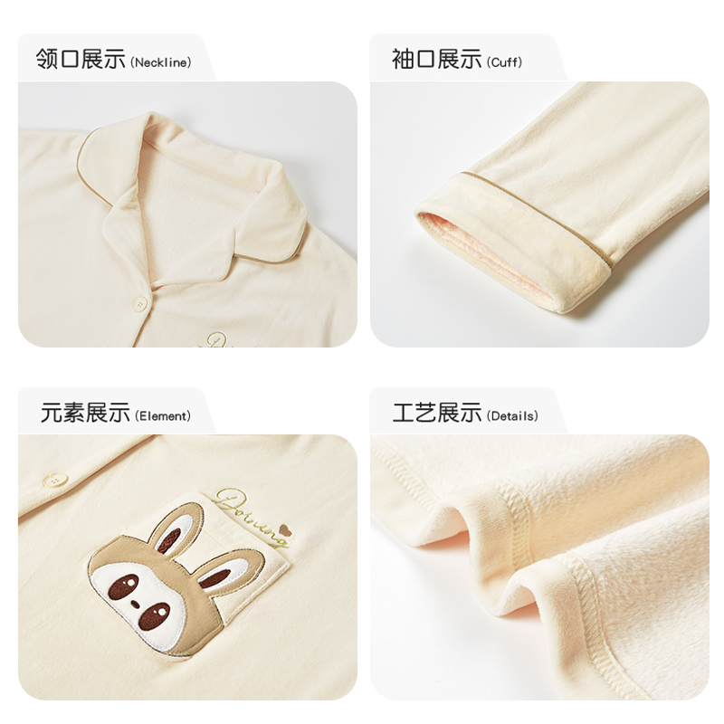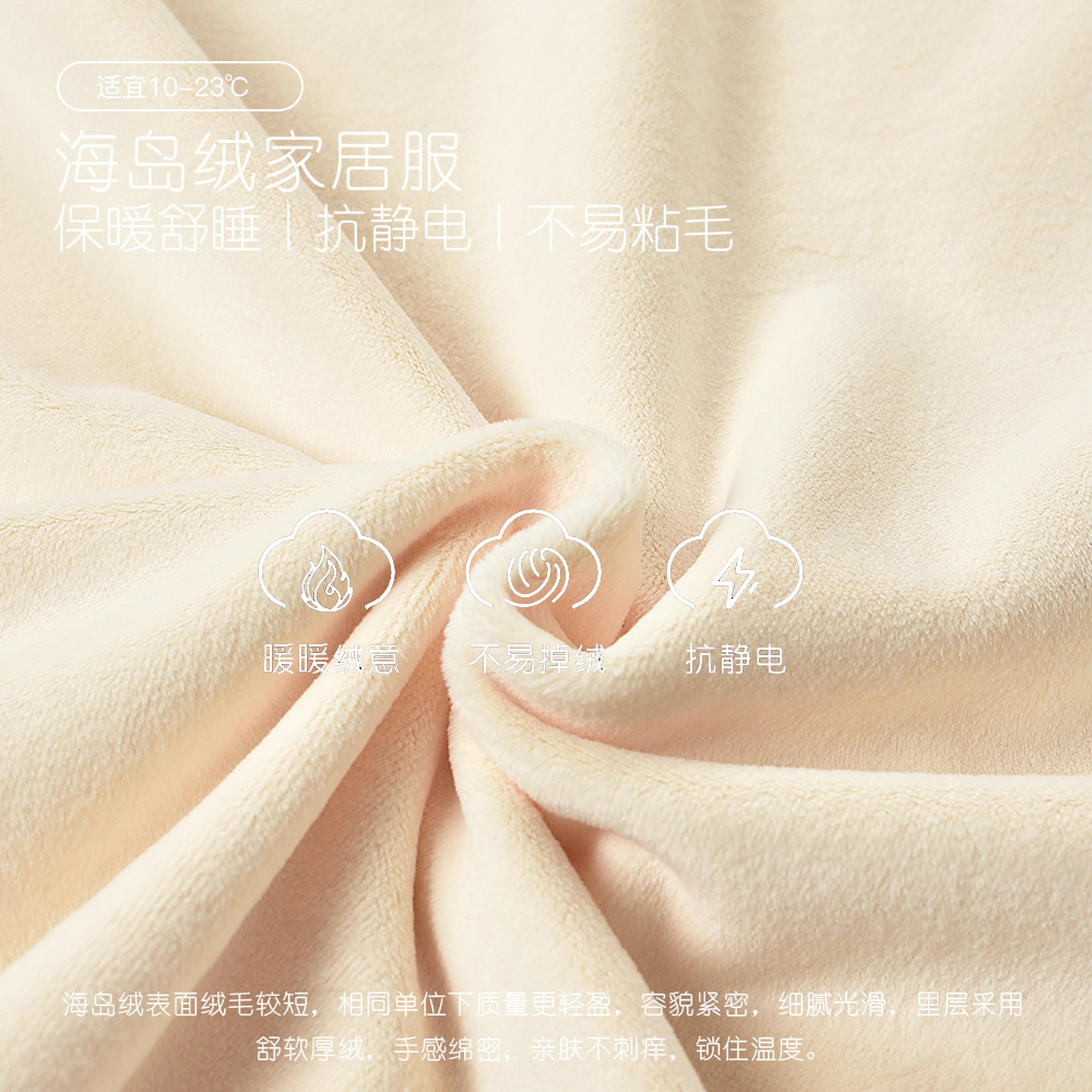 乐姿梦秋季 冬情侣家居服女可爱卡通海岛绒睡衣男保暖柔软薄绒套装