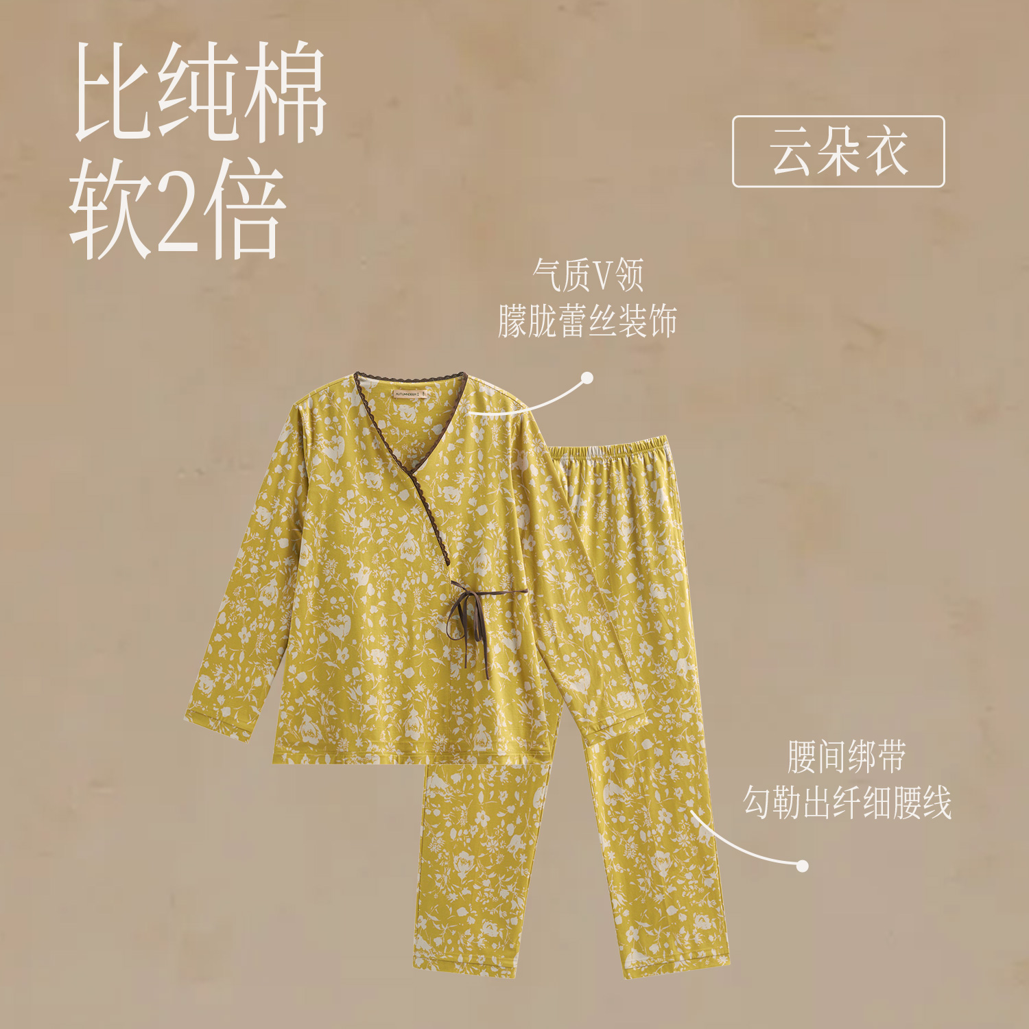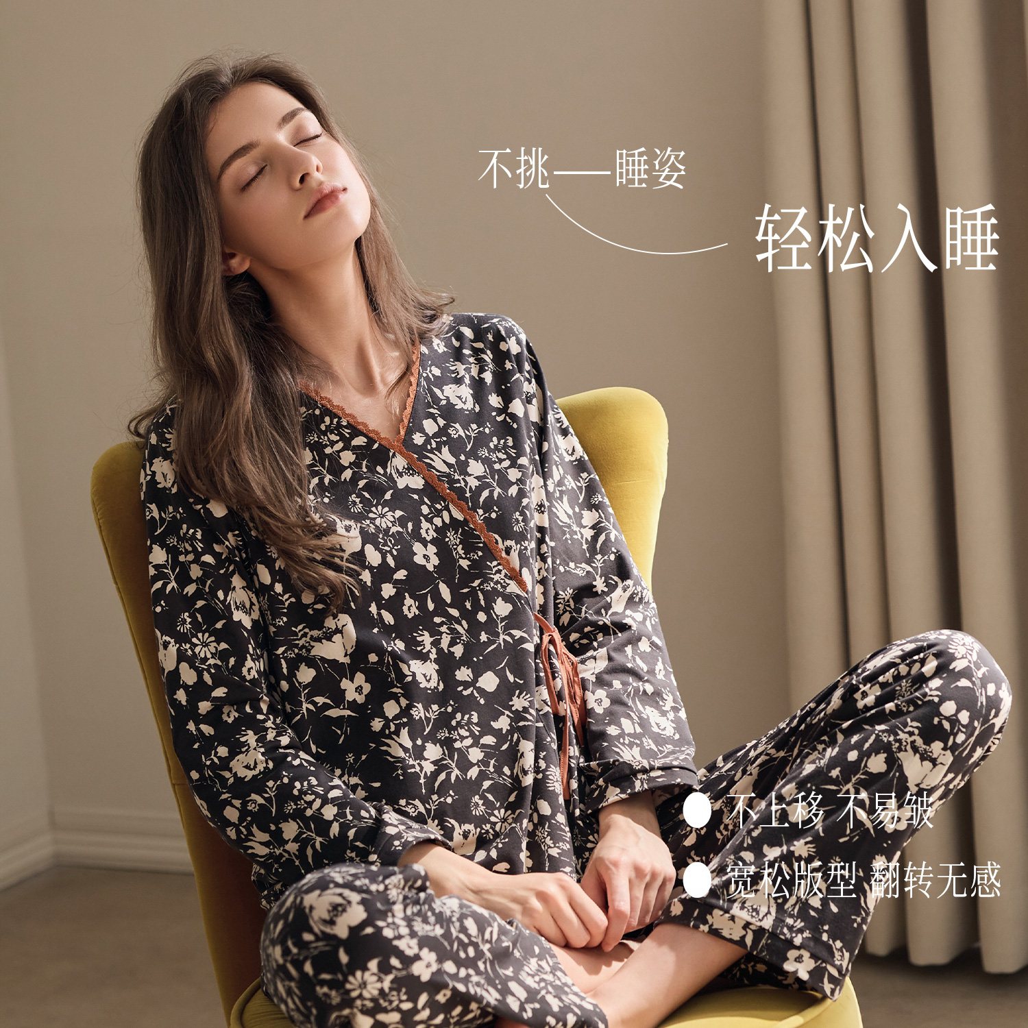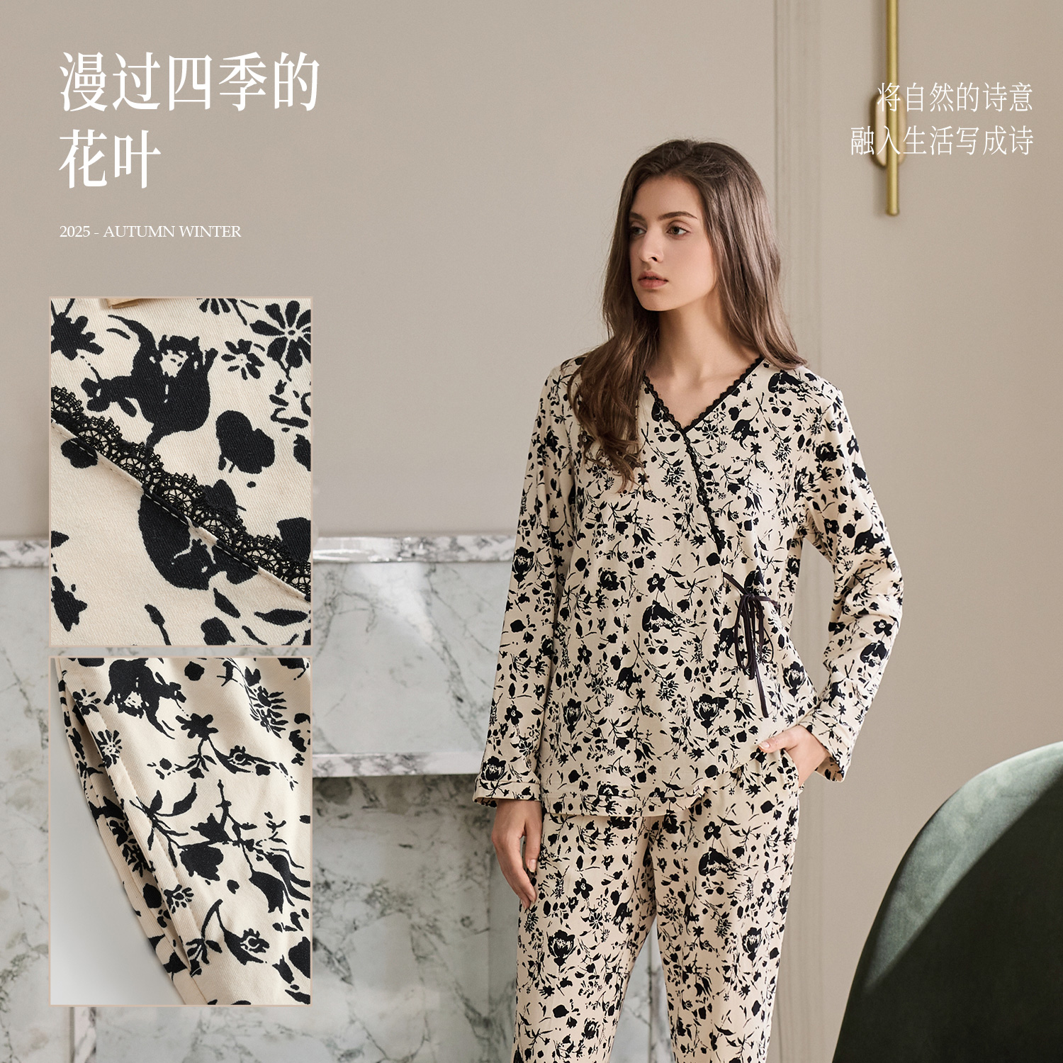 春秋可外穿家居服套装 都市丽人纯棉女士长袖 睡衣甜美波点25年新款
