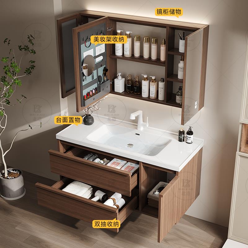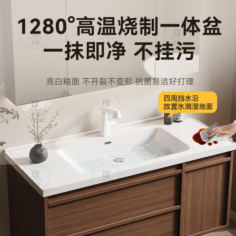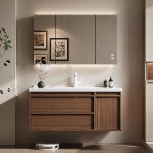 中古风胡桃木色陶瓷一体盆橡木浴室柜组合卫生间洗手洗脸盆洗漱台