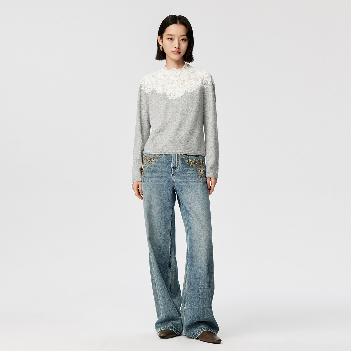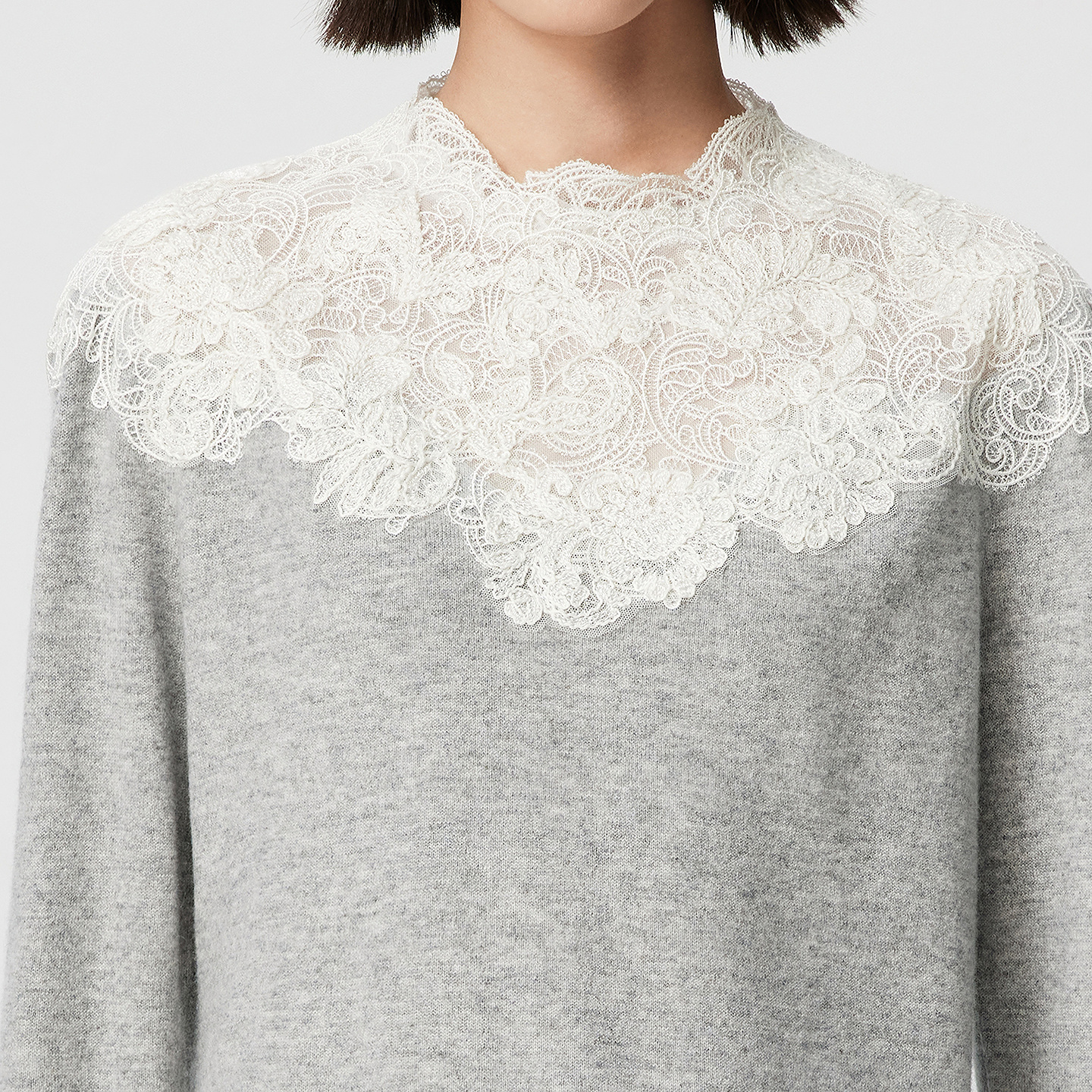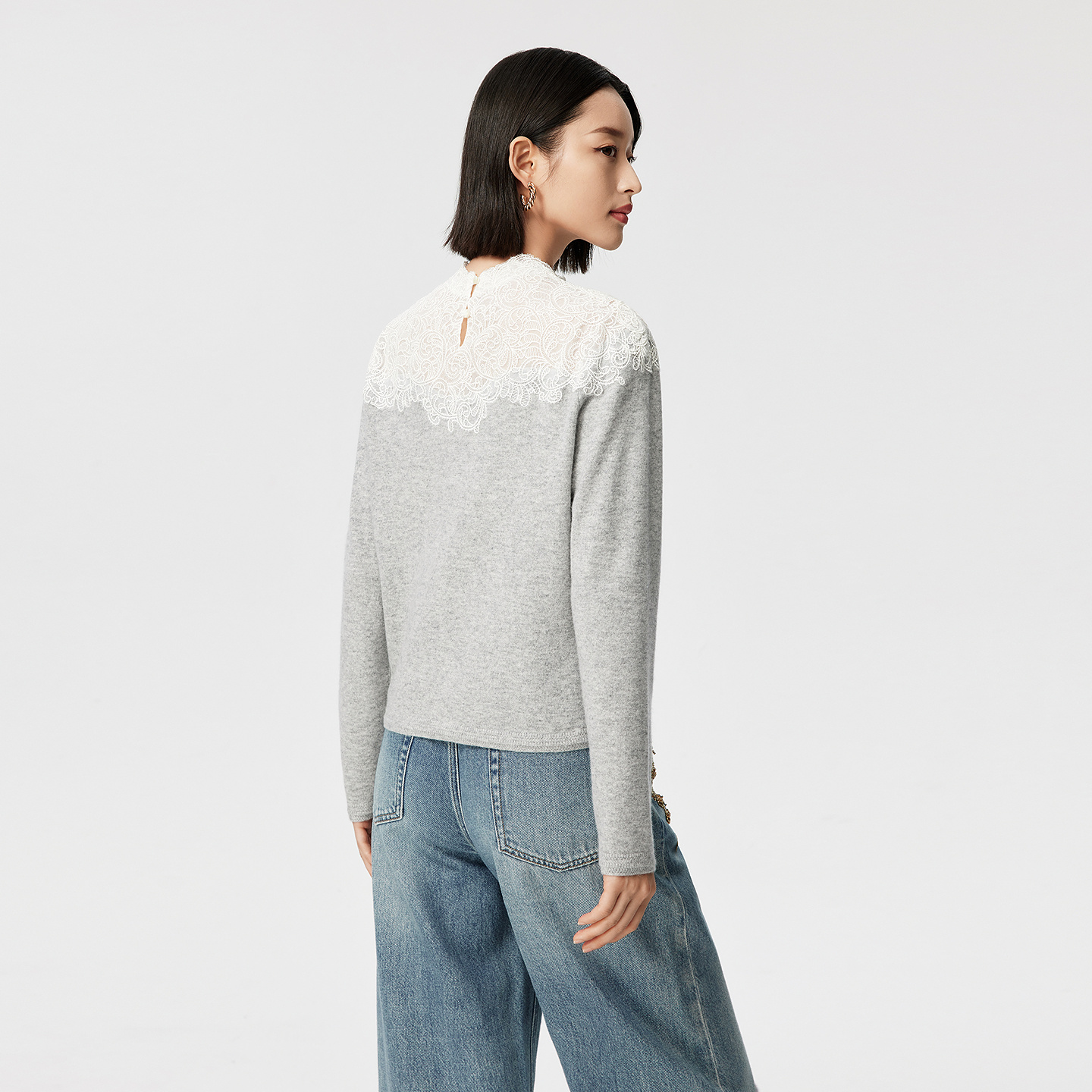 精致蕾丝绣花领插肩袖 新款 VGRASS25冬季 羊绒针织衫 一片云针织