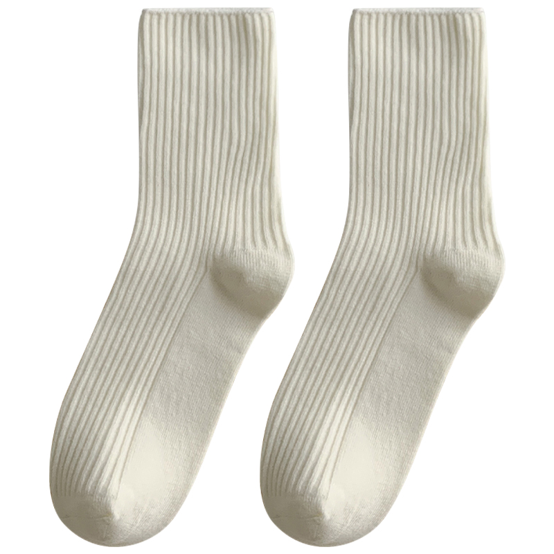 白色堆堆袜子女中筒春秋款 纯棉秋冬木耳边长筒无骨月子袜 配小皮鞋