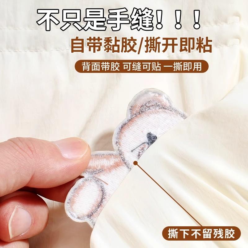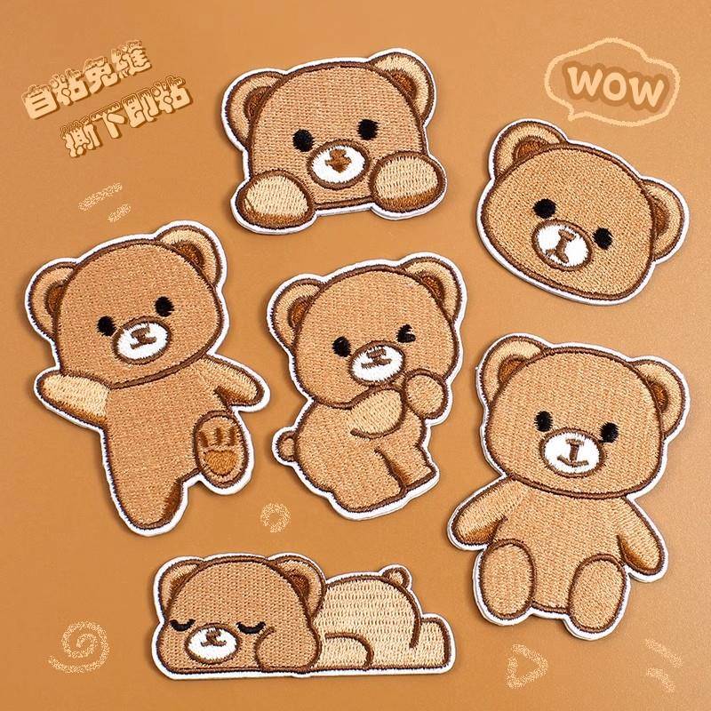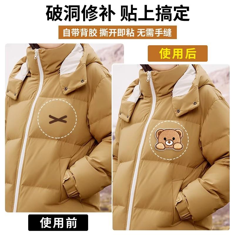 卡通补丁贴无痕修补破洞衣服裤 子羽绒服自粘免缝棕色小熊刺绣布贴