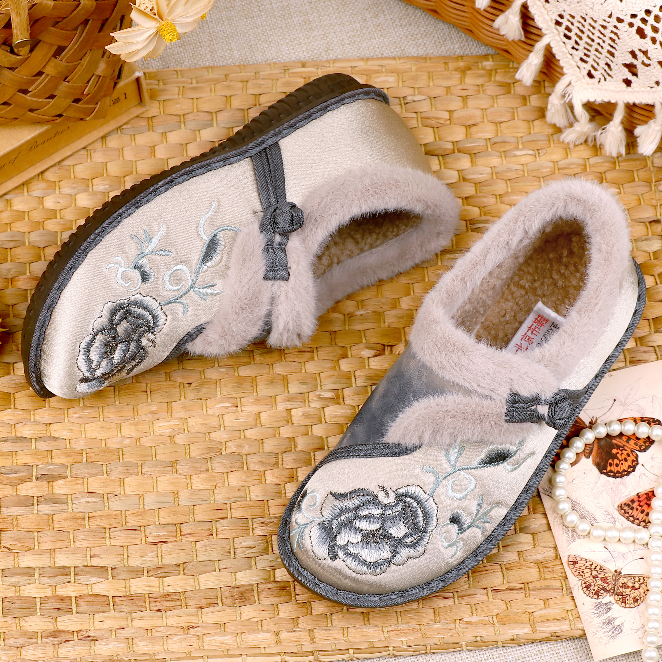 汉服 民族风防滑复古刺绣妈妈鞋 老北京绣花布鞋 女秋冬加绒保暖棉鞋