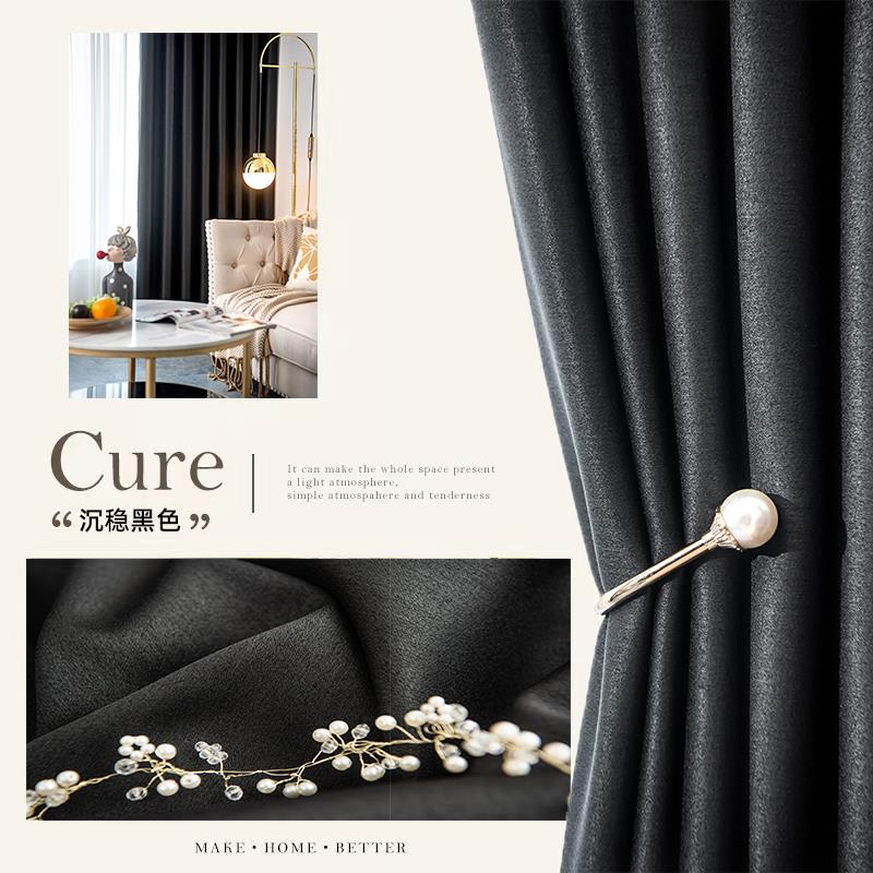 加厚防晒黑色棉麻全遮光窗帘卧室定制客厅飘窗新款 纯色隔热遮阳布