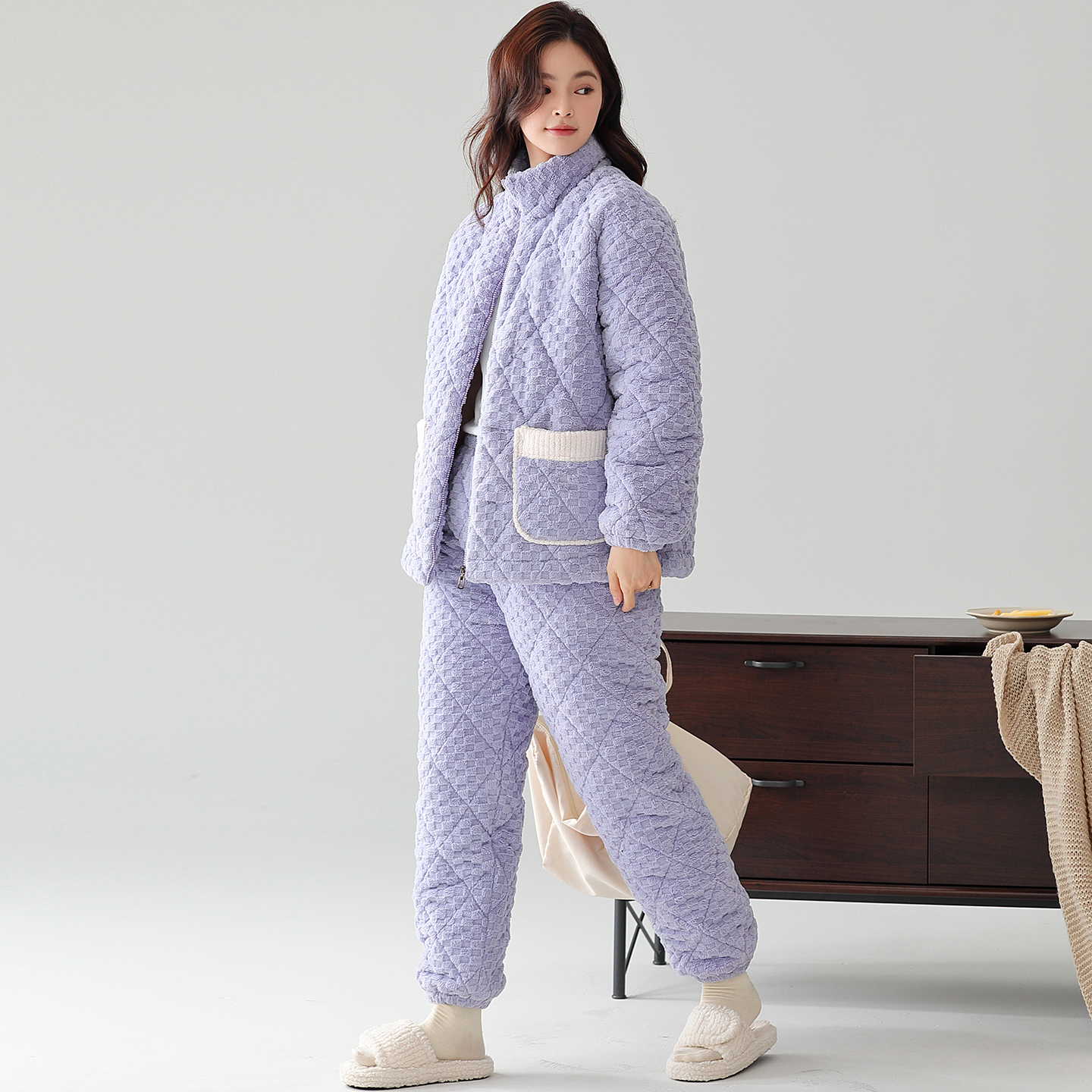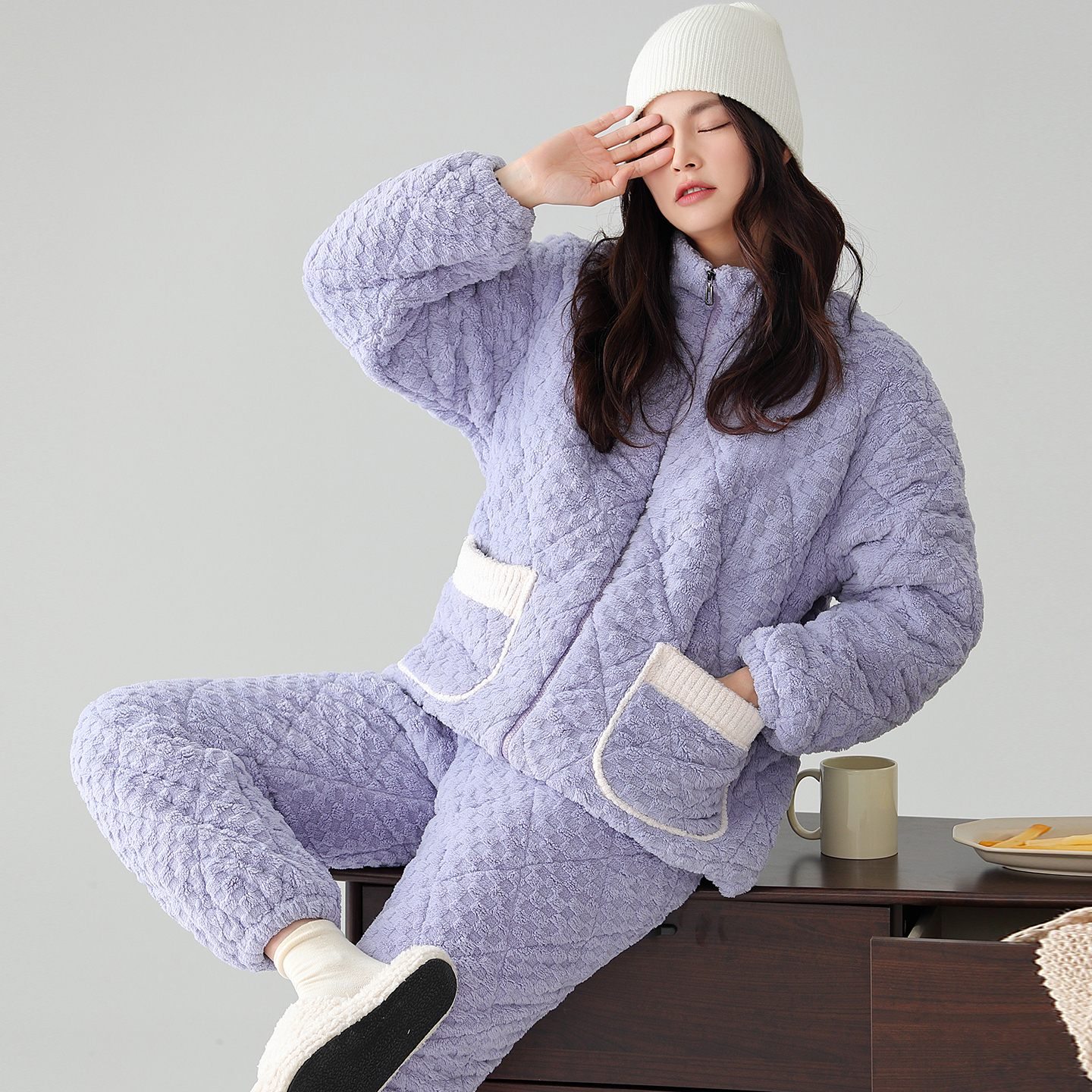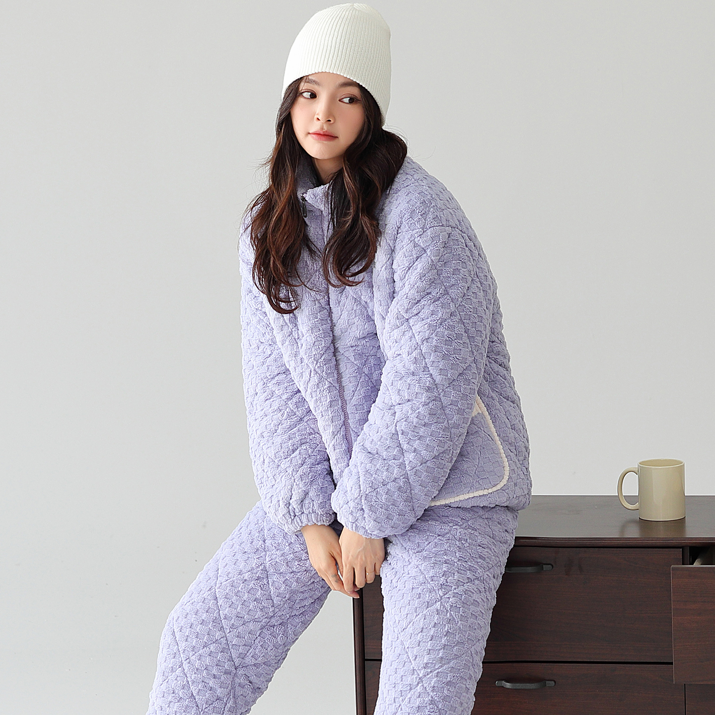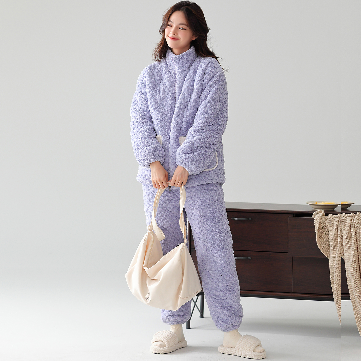 宜而爽睡衣冬季 加绒加厚保暖夹棉家居服女柔软宽松立领软绵绵 新款