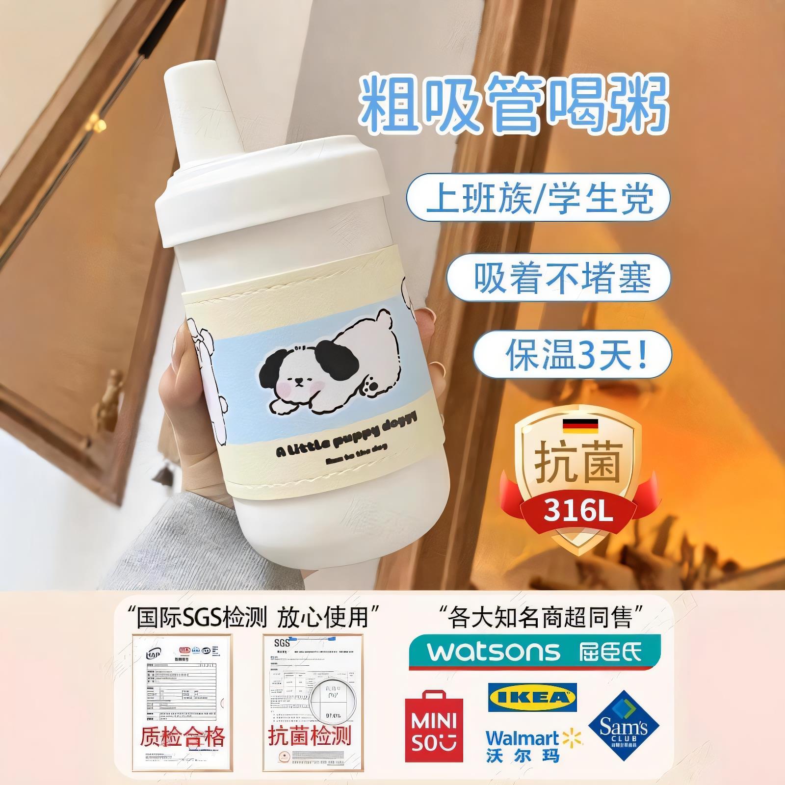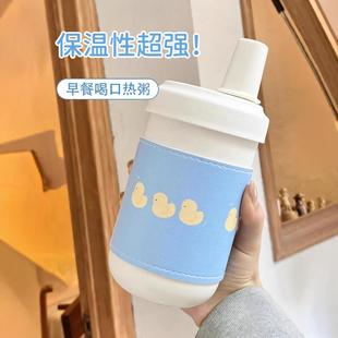 早餐粗吸管喝粥杯子保温吸珍珠奶茶豆浆家用便携外带式 稀饭神器