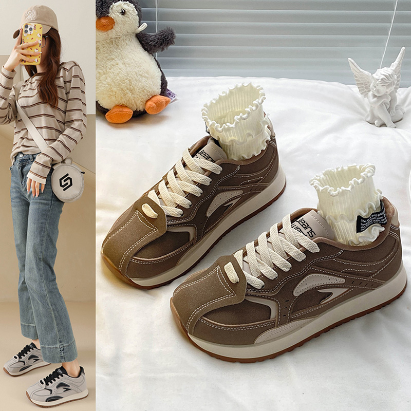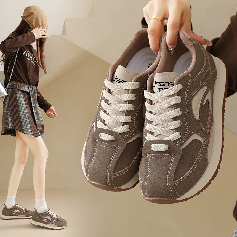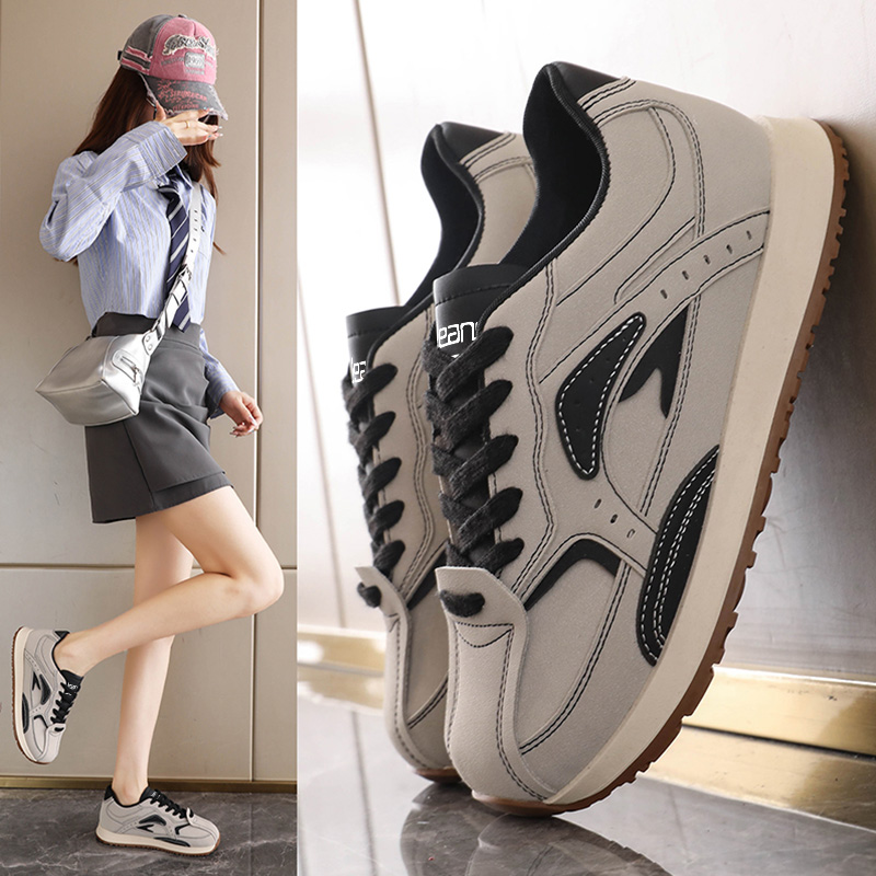 新款 女2025秋季 小白鞋 ins韩版 爆款 学生运动轻便板鞋 磨砂皮德训鞋
