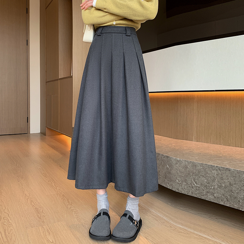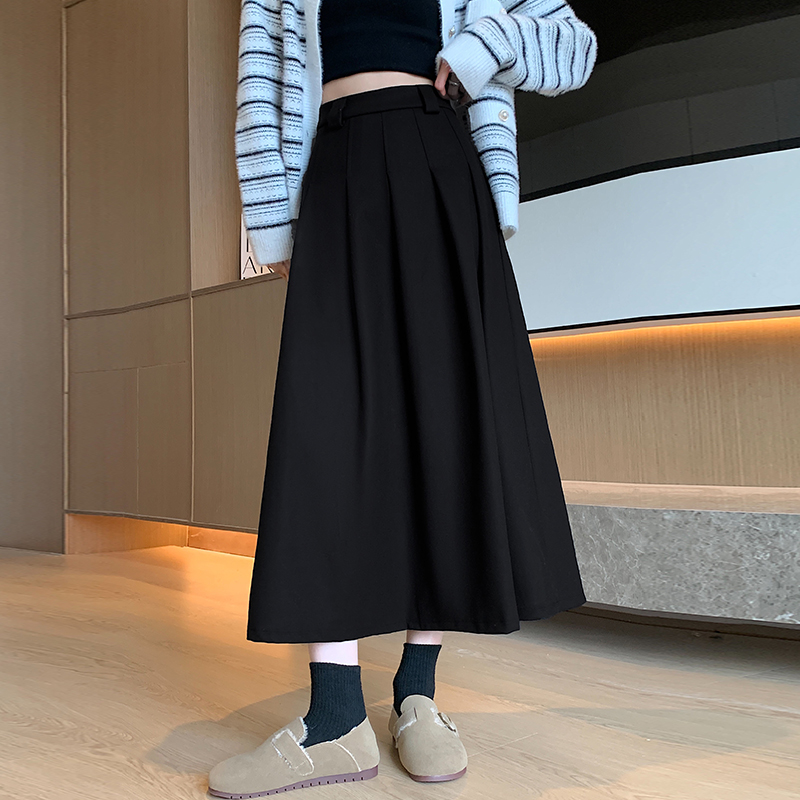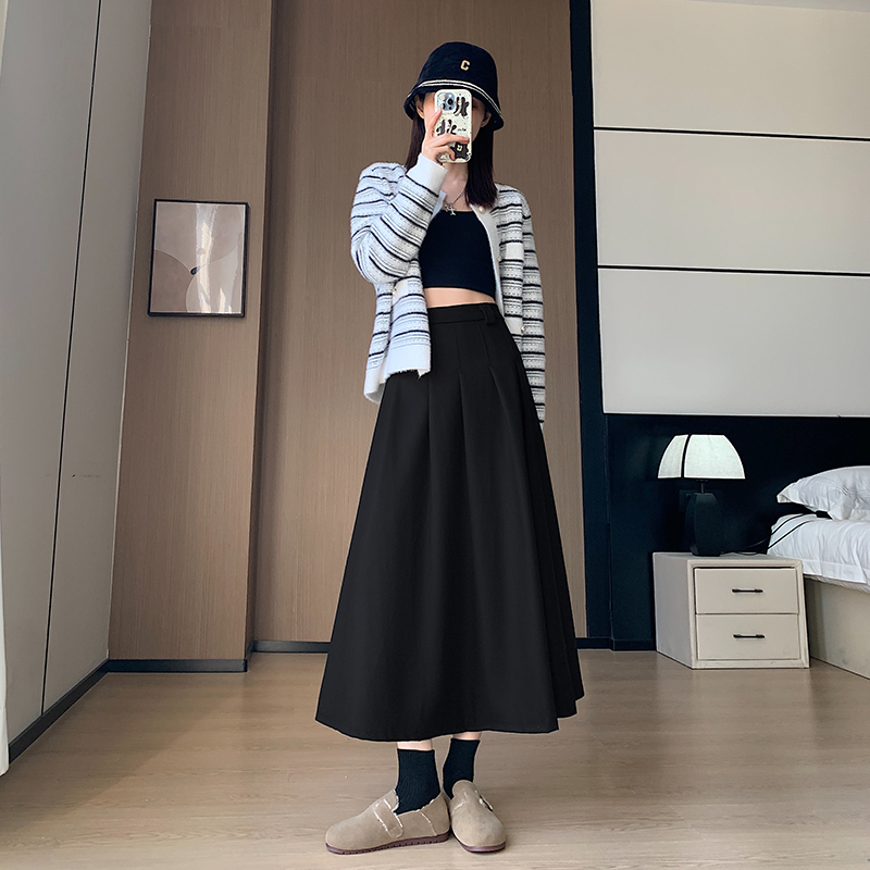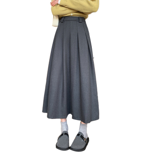 小个子胖MM学院风气质减龄大摆裙2025秋季 高腰压皱A字半身裙 新款