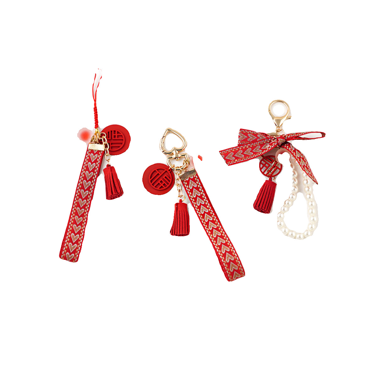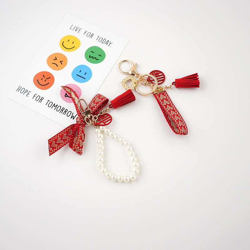 喜庆过年福字挂饰钥匙扣蝴蝶结汽车链ins爱心挂件珍珠钥匙圈复古