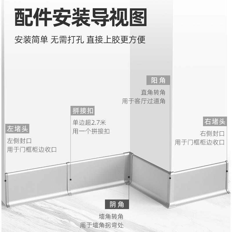 铝合金踢脚线免钉弧形圆弧金属超薄极简4公分6 8cm防锈贴脚地脚线