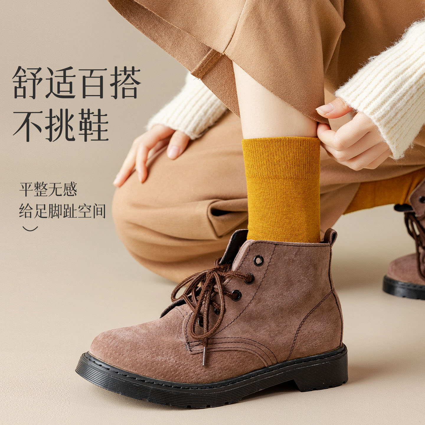 雅鹿袜子女春秋款 纯棉中筒袜日系堆堆无骨月子吸汗防臭纯棉长袜子