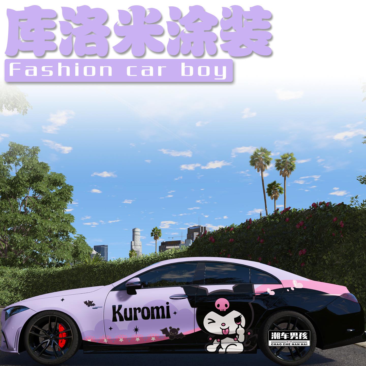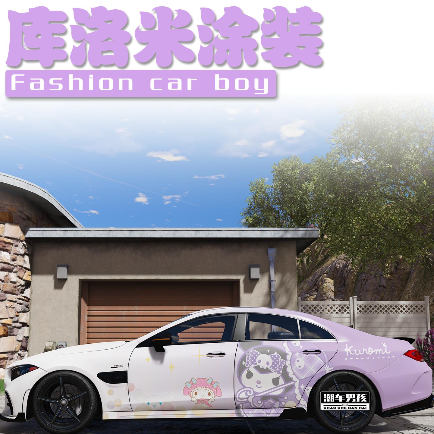 甜妹专属奔驰CLS全车膜C63可爱三丽鸥库洛米汽车彩绘涂装 定制 个性