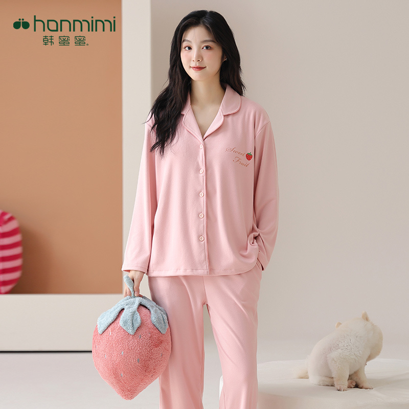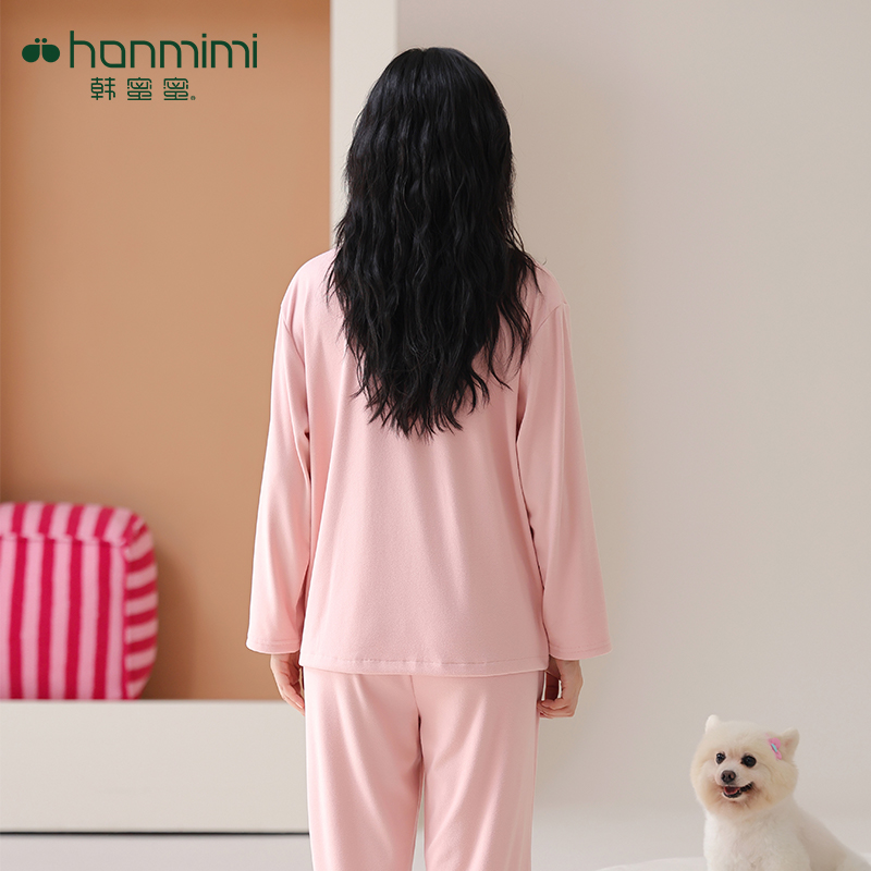 带胸垫春秋家居服套装 粉色纯棉女士长袖 2025新款 Pinksea睡衣女款