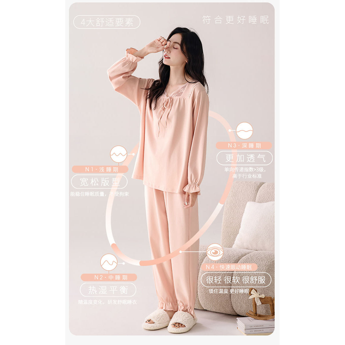 秋款 婷美纯棉睡衣女款 少女系长袖 基础款 可外出穿家居服 2025新款