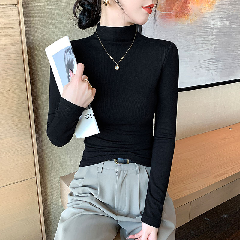 针织薄款 洋气百搭修身 上衣 女内搭2025春秋冬新款 黑色半高领打底衫