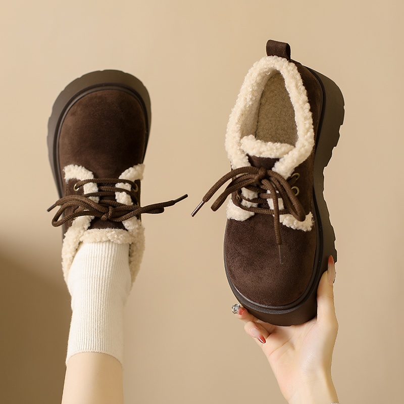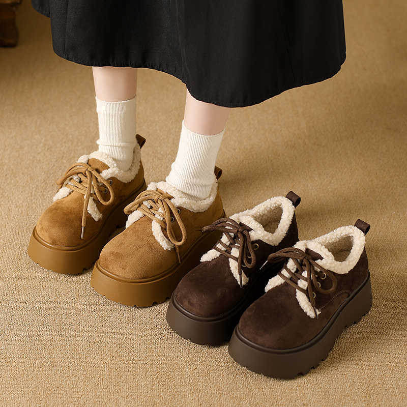 保暖低帮棉鞋 加绒一脚蹬乐福鞋 新款 厚底增高勃肯雪地靴女2025冬季
