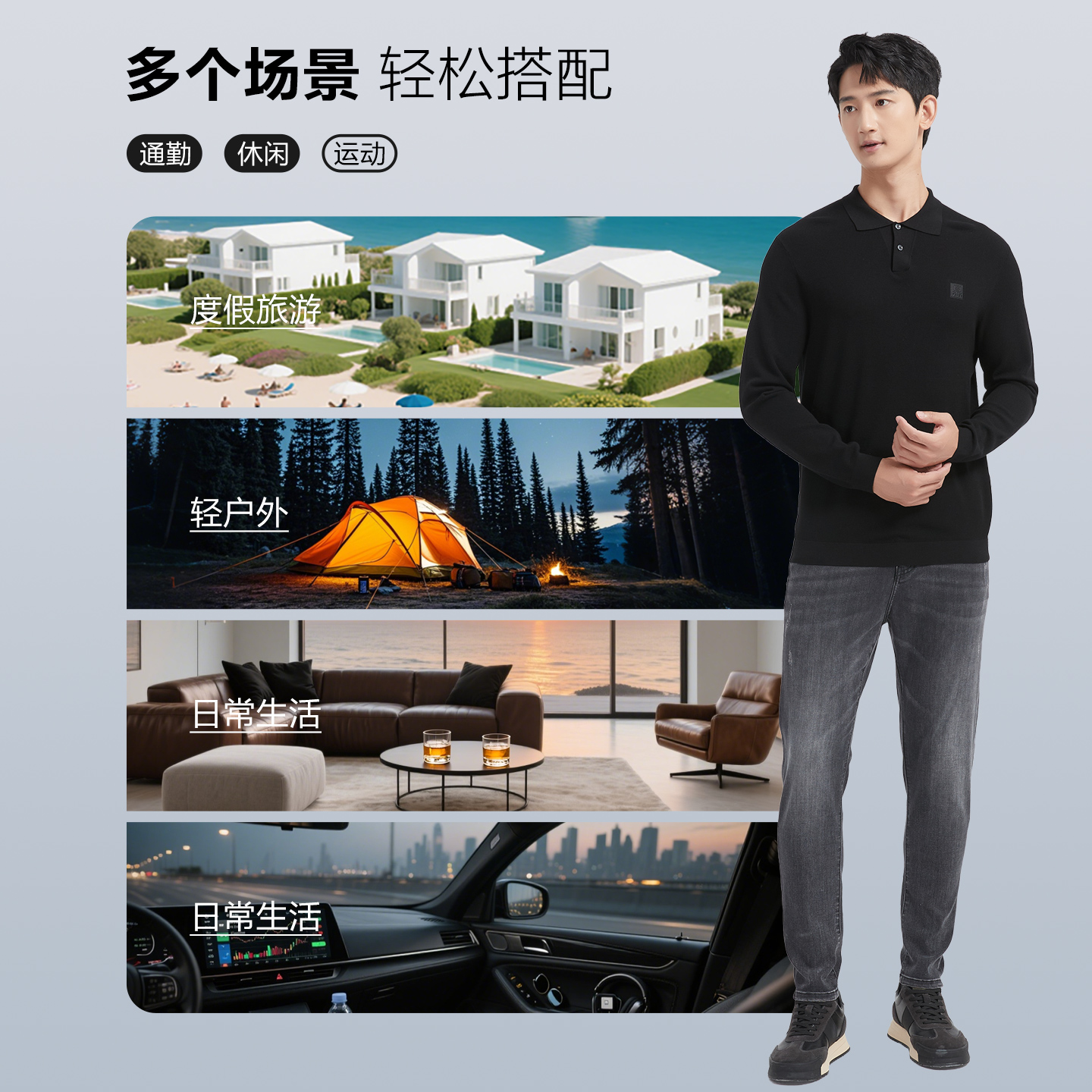 25秋新款 针织衫 黑色毛衣内搭打底男 海澜之家轻商务纯羊毛长袖 HLA