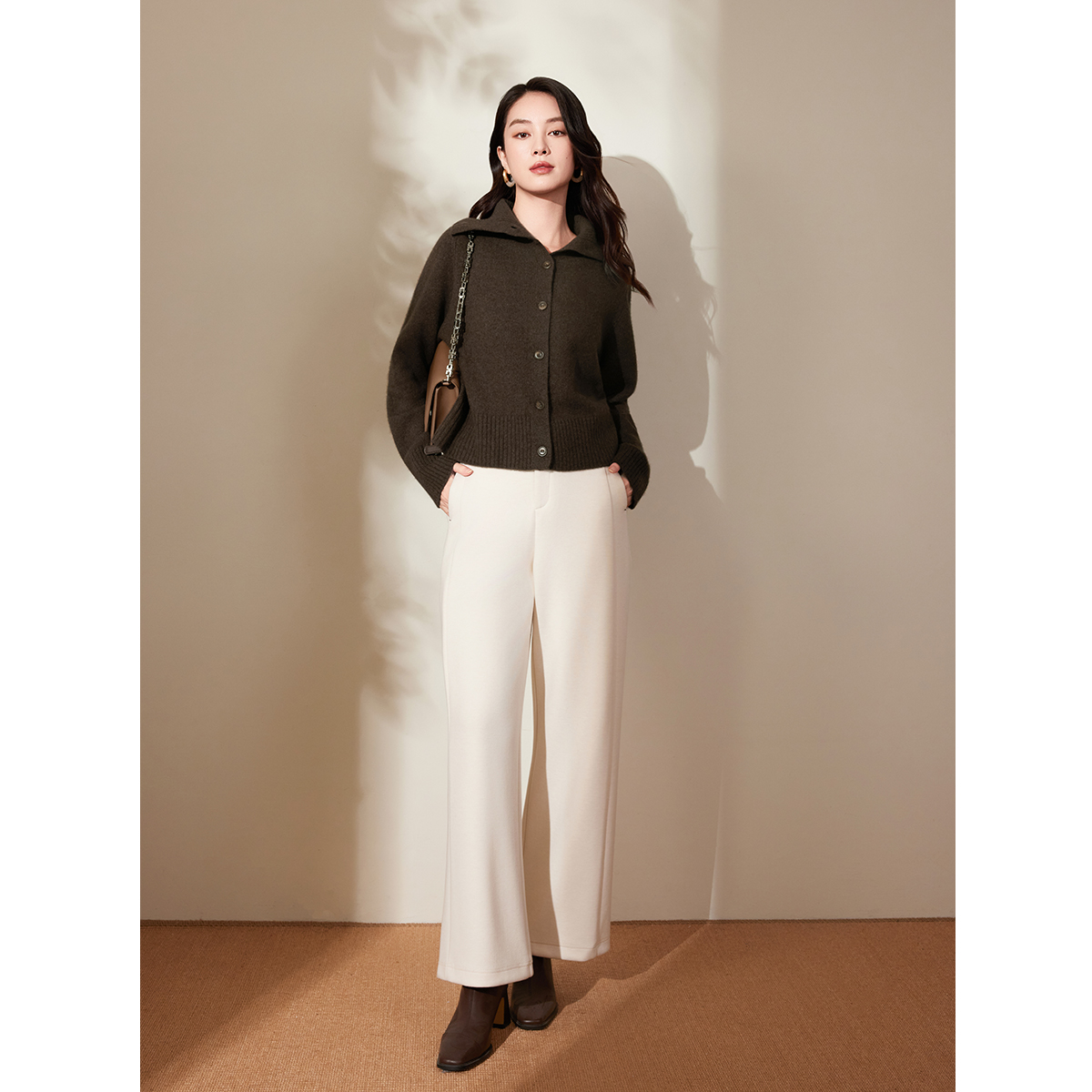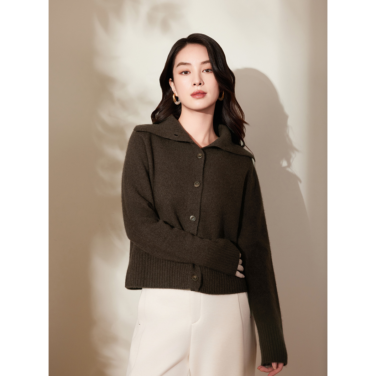时尚 新款 粉蓝衣橱2025秋冬女装 羊毛大翻领慵懒开衫 牦牛绒毛衫
