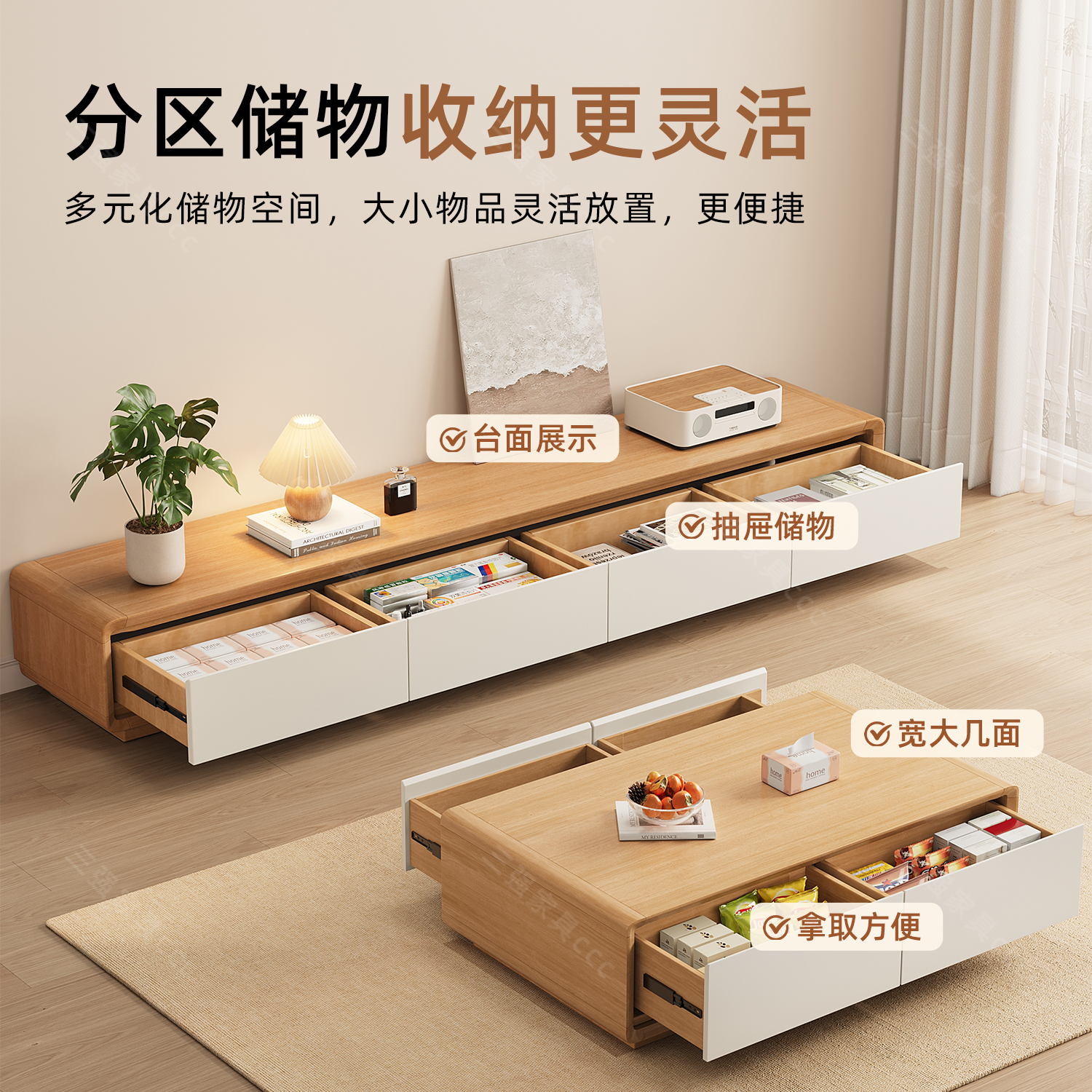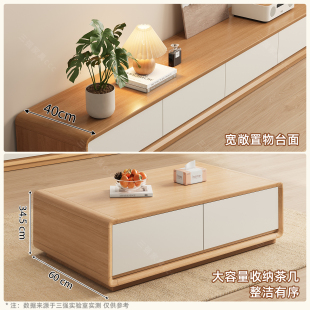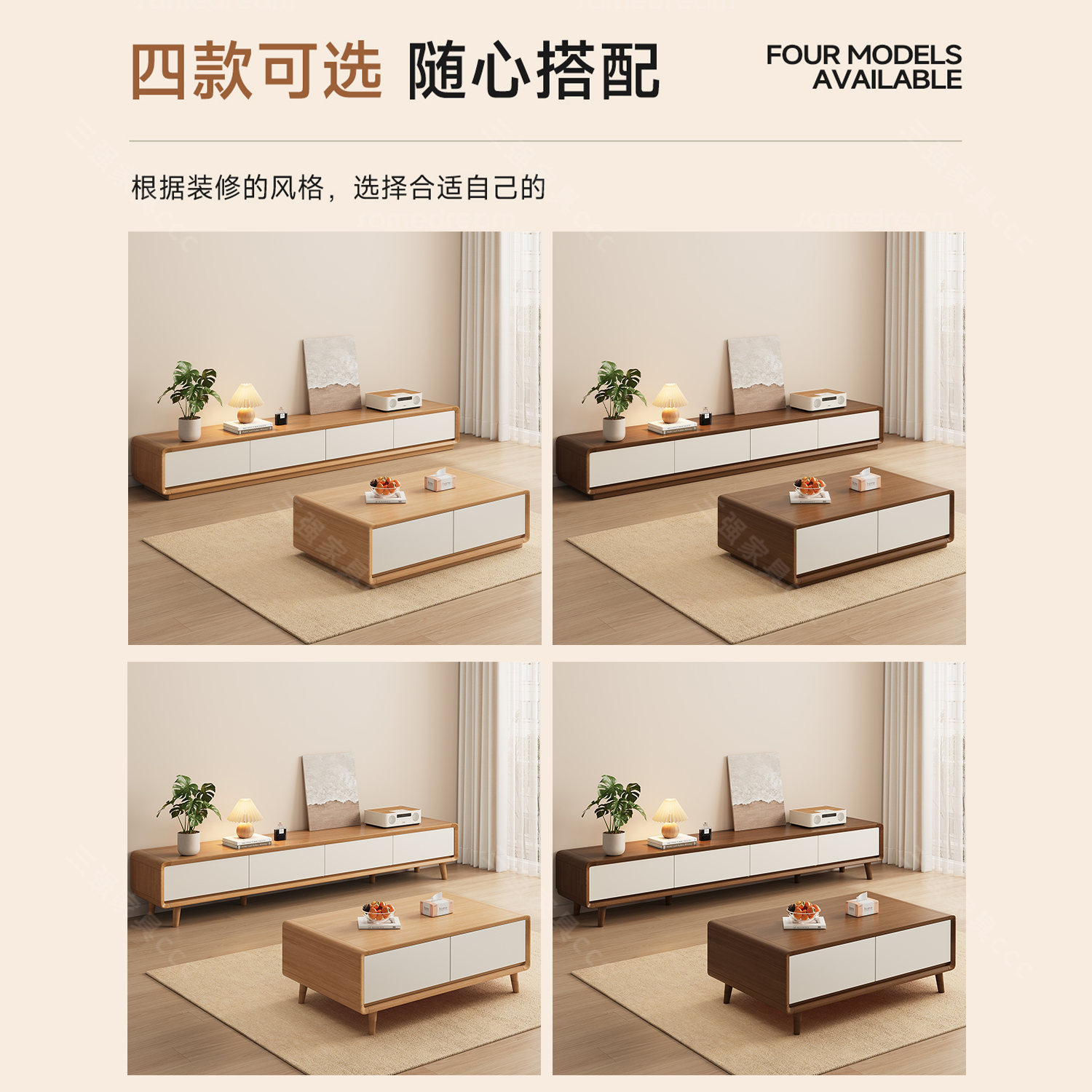 千初 小户型落地带抽屉客厅柜子 实木电视柜茶几组合2025新款