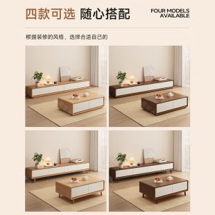 实木岩板伸缩电视机柜茶几组合小户型落地客厅家用收纳储物柜一体