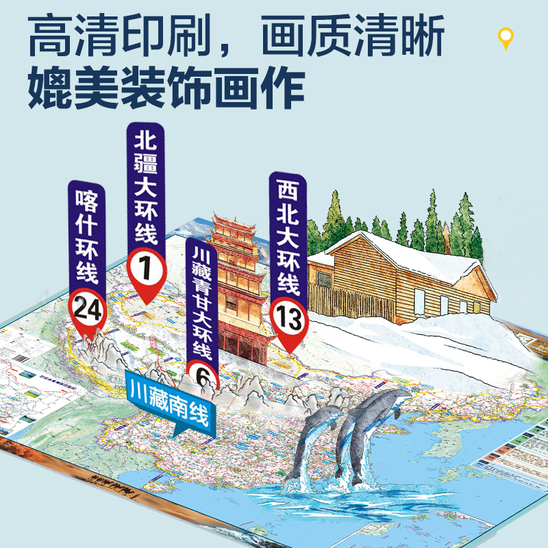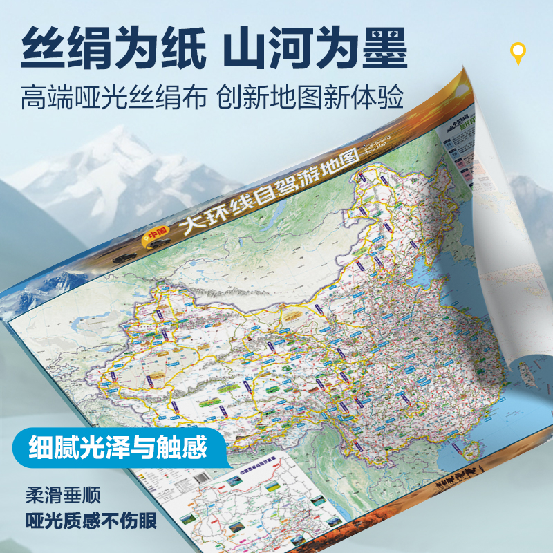 尺寸约1.17x0.86米 2025年中国大环线自驾游地图 全国经典 旅游大环线热门景观公路 精华景点 国道 丝绢布材质