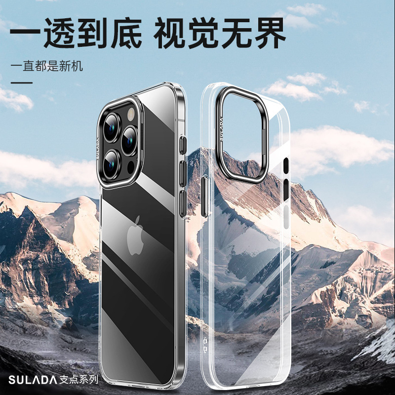 16ProMax壳高清通透镜头支架iPhone15pro保护套全包男士 商务14por防摔外壳ip15简约女网红新