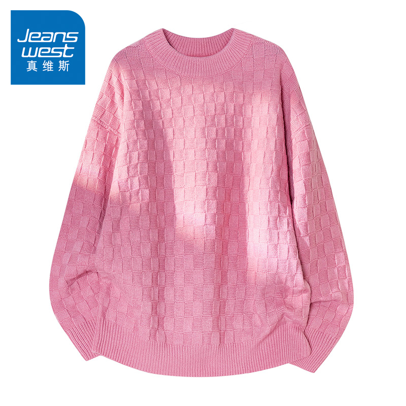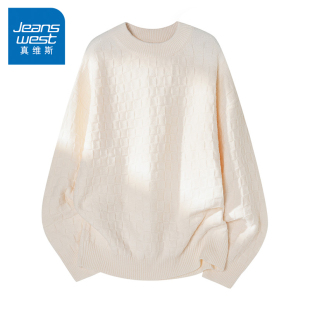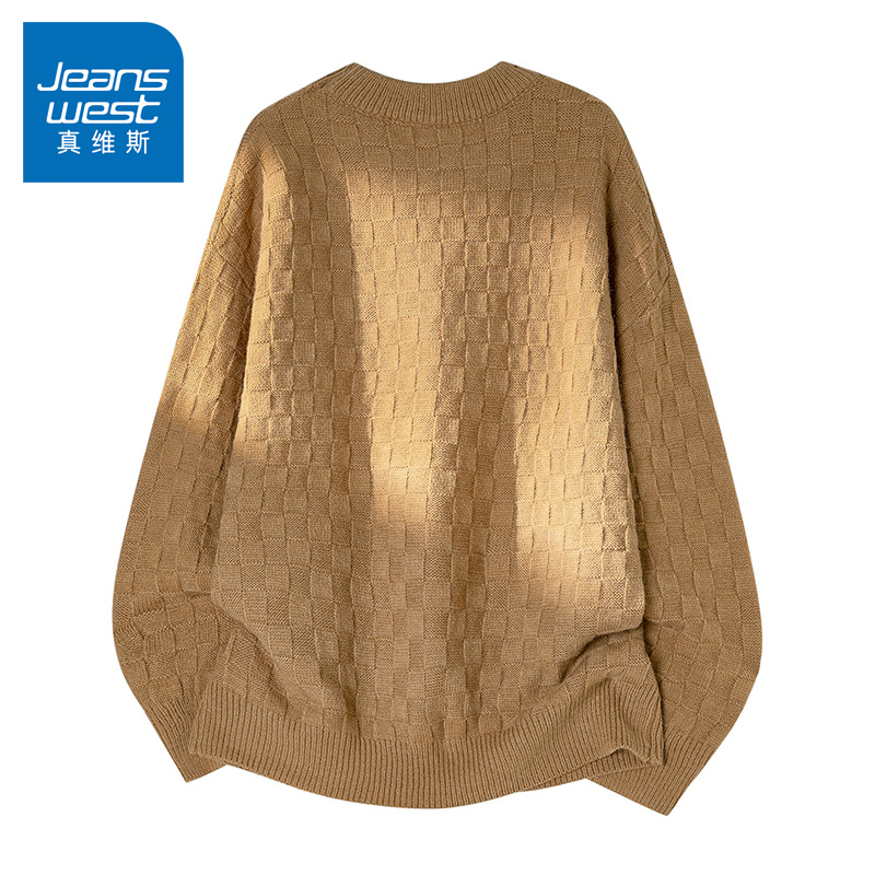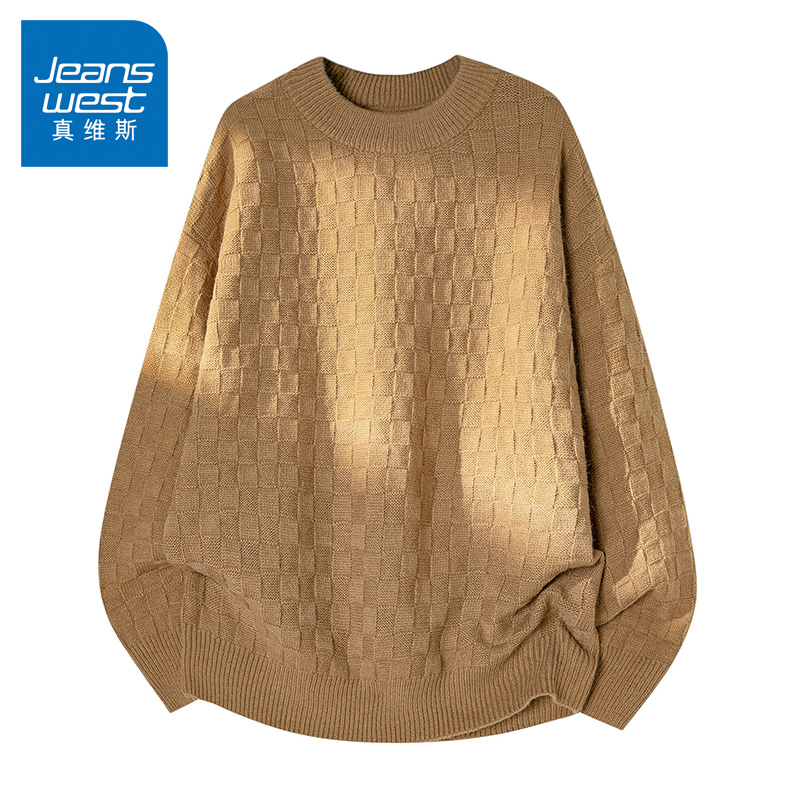 针织衫 情侣宽松圆领格子上衣服男款 秋冬季 N5真维斯毛衣男2025新款