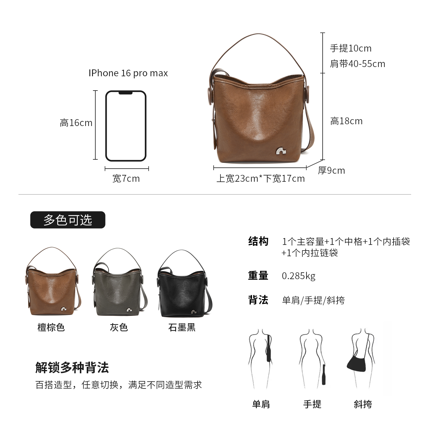 纳兰杜晚风包水桶包女大容量轻便真皮包包2025新款 单肩斜挎包通勤