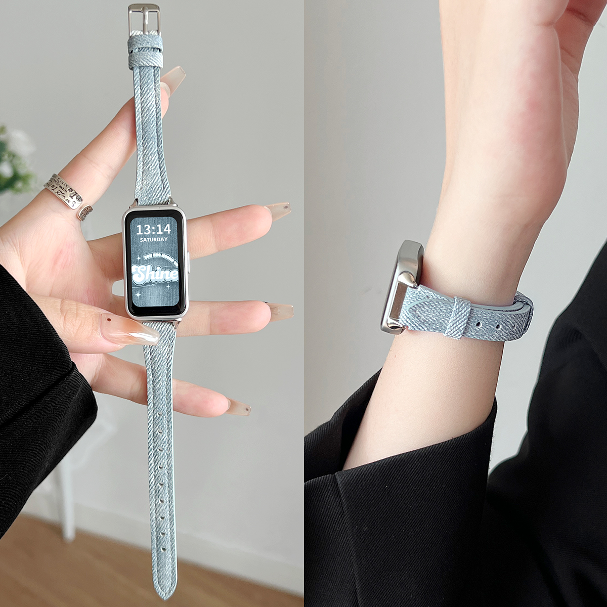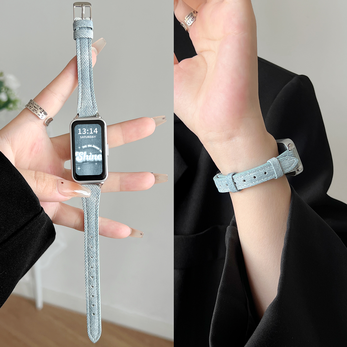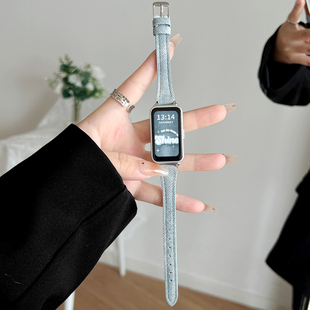 band7 荣耀电子6pro表链智能运动九十代手带高级感女款 适用华为手环10手表带链创意皮质9nfc版 手腕带牛仔8新款