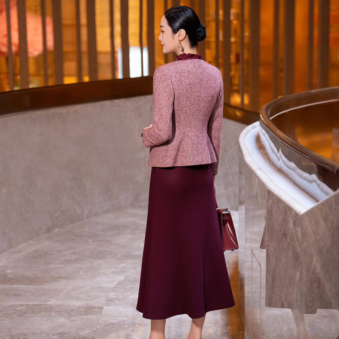 气质喜婆婆婚宴装 红色毛呢小香风套装 时尚 新款 两件套 裙女2025冬季