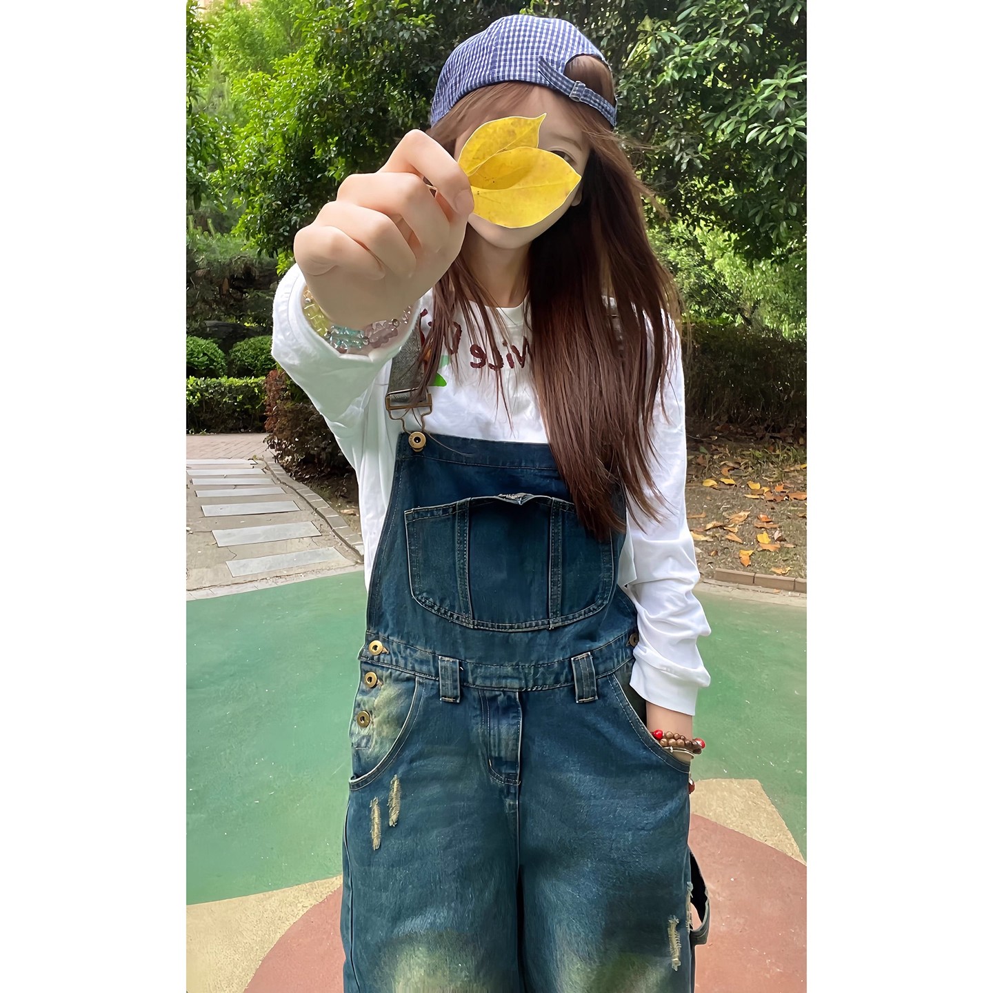 宽松显瘦连体阔腿裤 减龄牛仔背带裤 奶系韩版 2025年新款 女春夏秋季