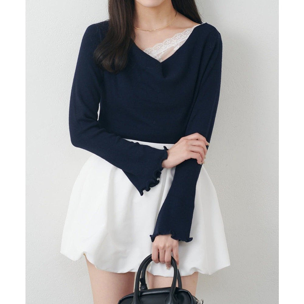 柔软毛衫 春款 乐町甜美木耳边半高领打底衫 甜美打底衣修身 预