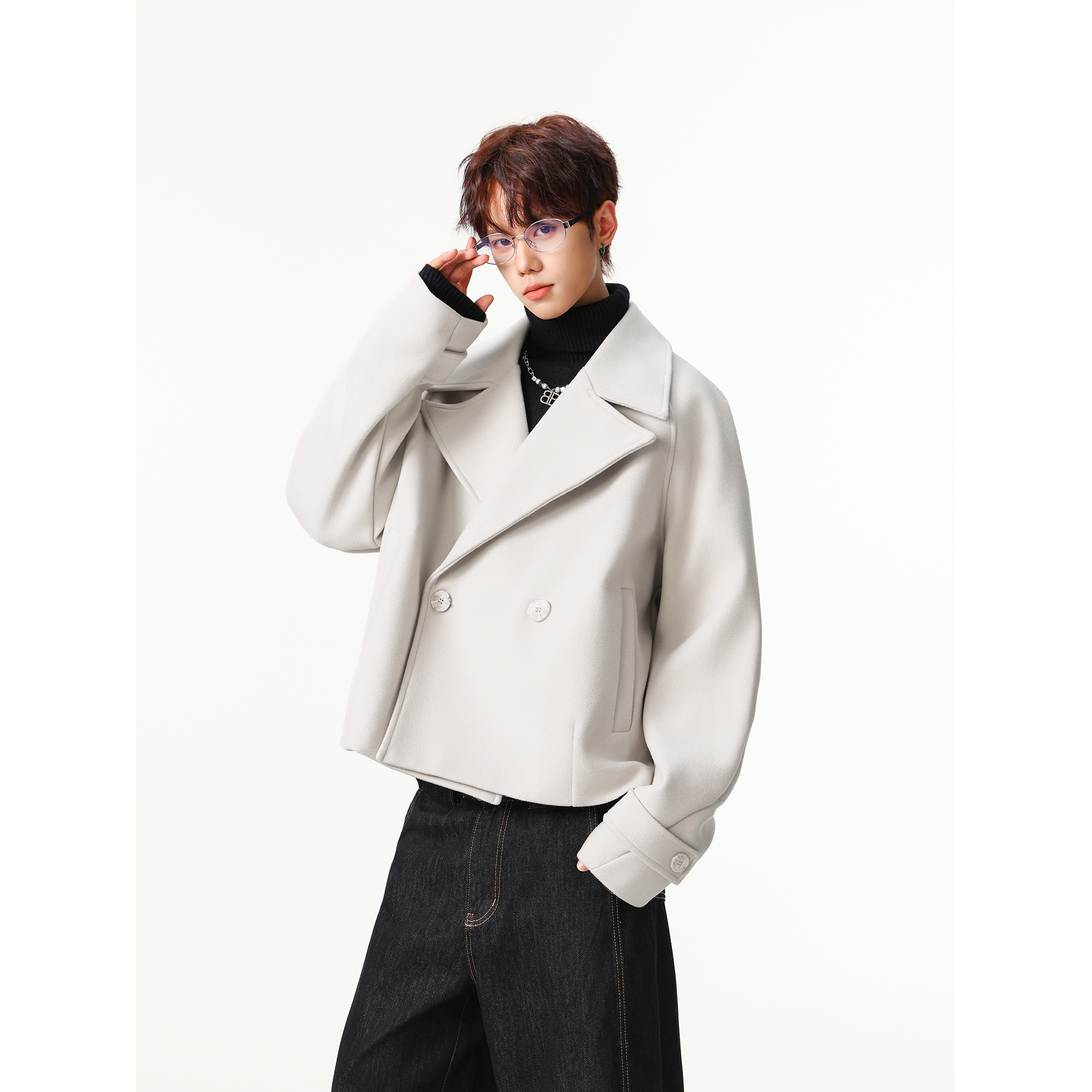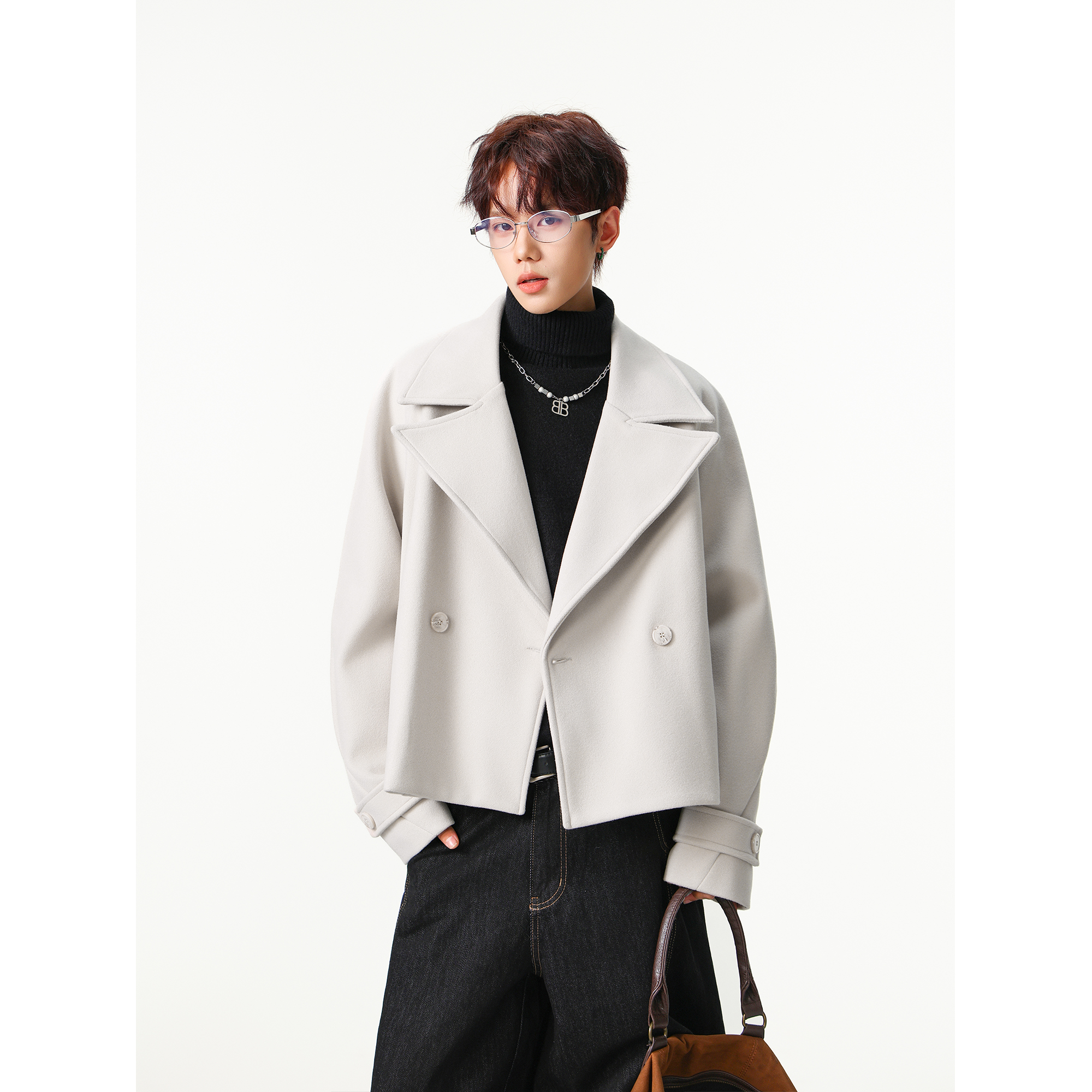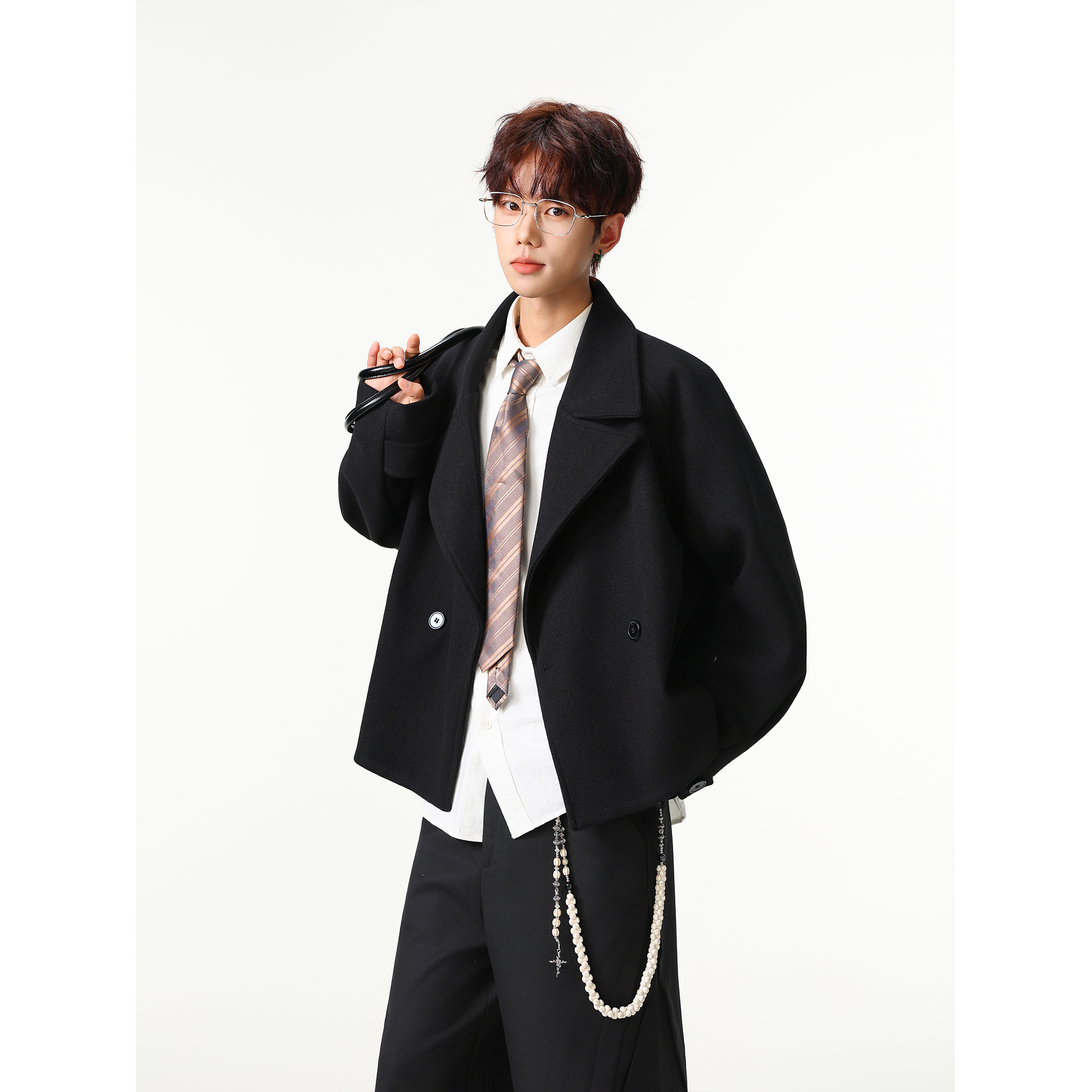 潮牌宽松休闲青少年风衣外套 领毛呢大衣男秋冬季 cleanfit短款 西装