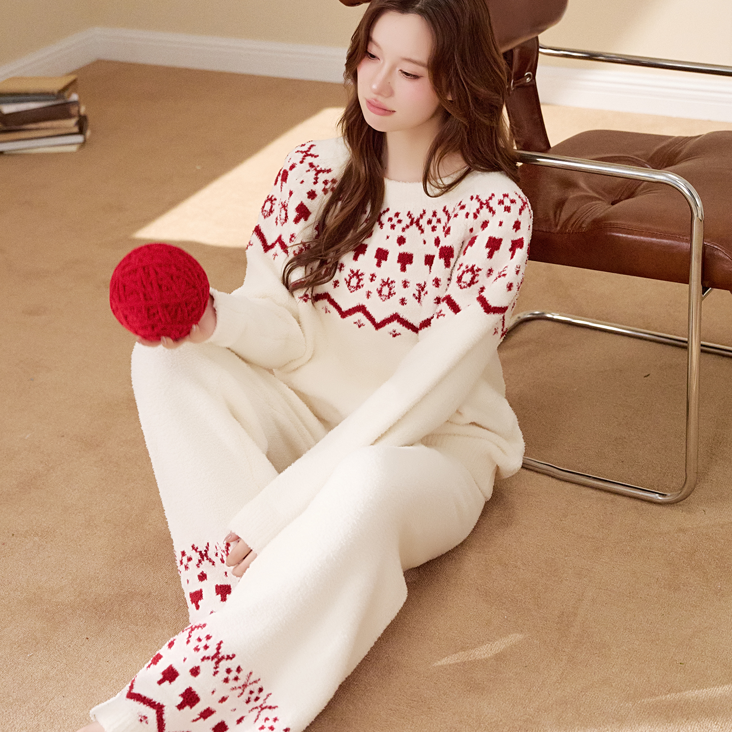 红豆珊瑚绒睡衣女羊羔绒抗静电加厚桂花绒甜美保暖外穿家居服套装