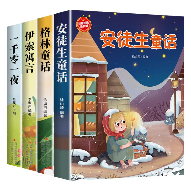 书籍带拼音 儿童故事书一千零一夜伊索寓言小学生一二三年级阅读课外书必读正版 睡前绘本K 安徒生童话格林童话全集注音版 全套4册