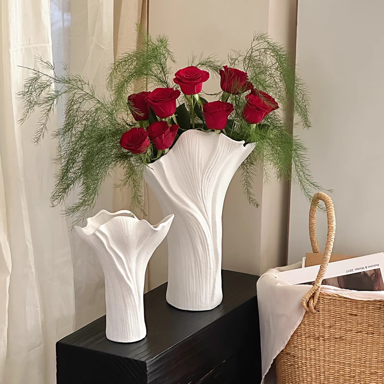 欧式 饰摆件 玫瑰插花花瓶白色简约陶瓷花器客厅餐桌干花鲜花水培装