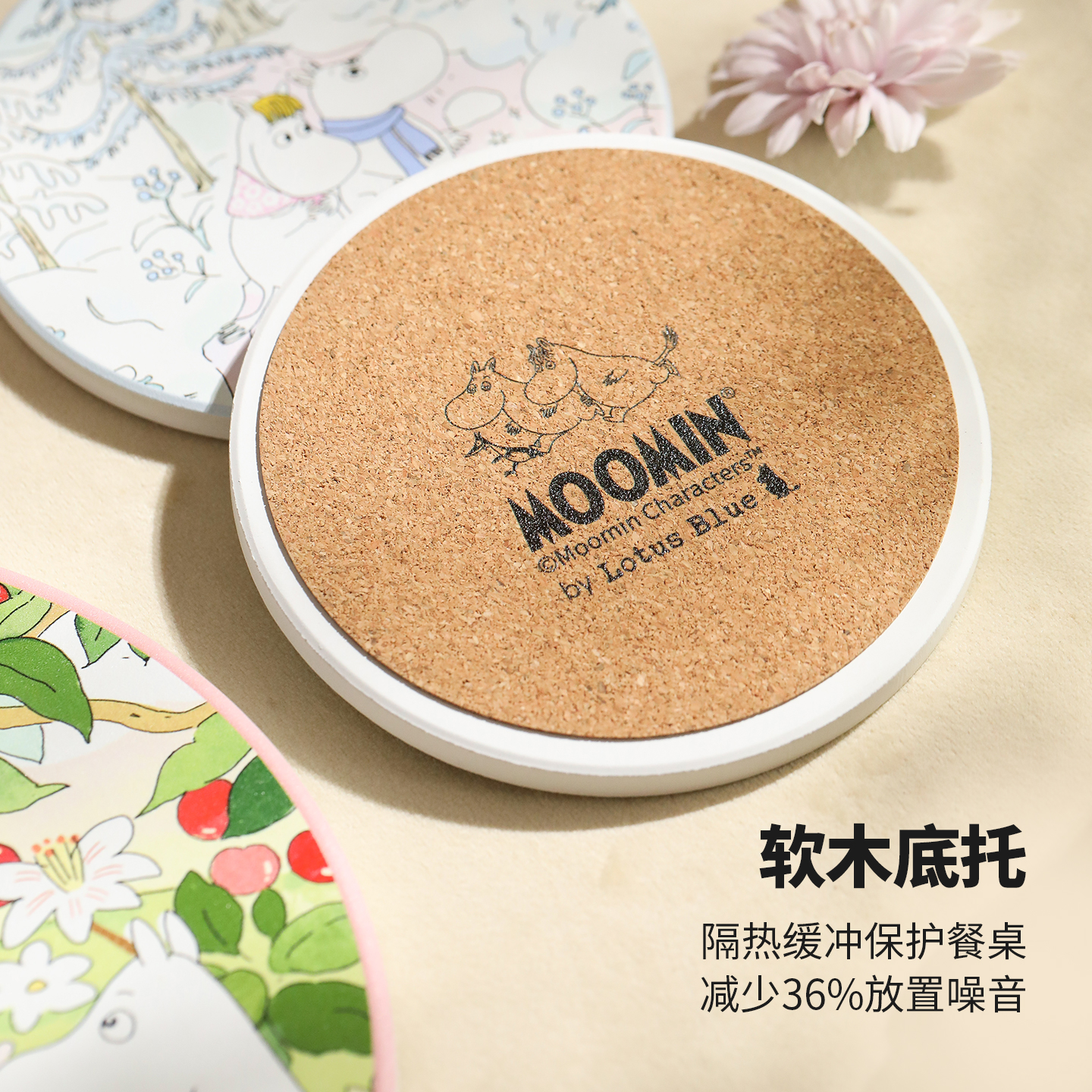 蓝莲花moomin姆明吸水杯垫办公室陶瓷耐高温垫子高颜值茶杯垫锅垫