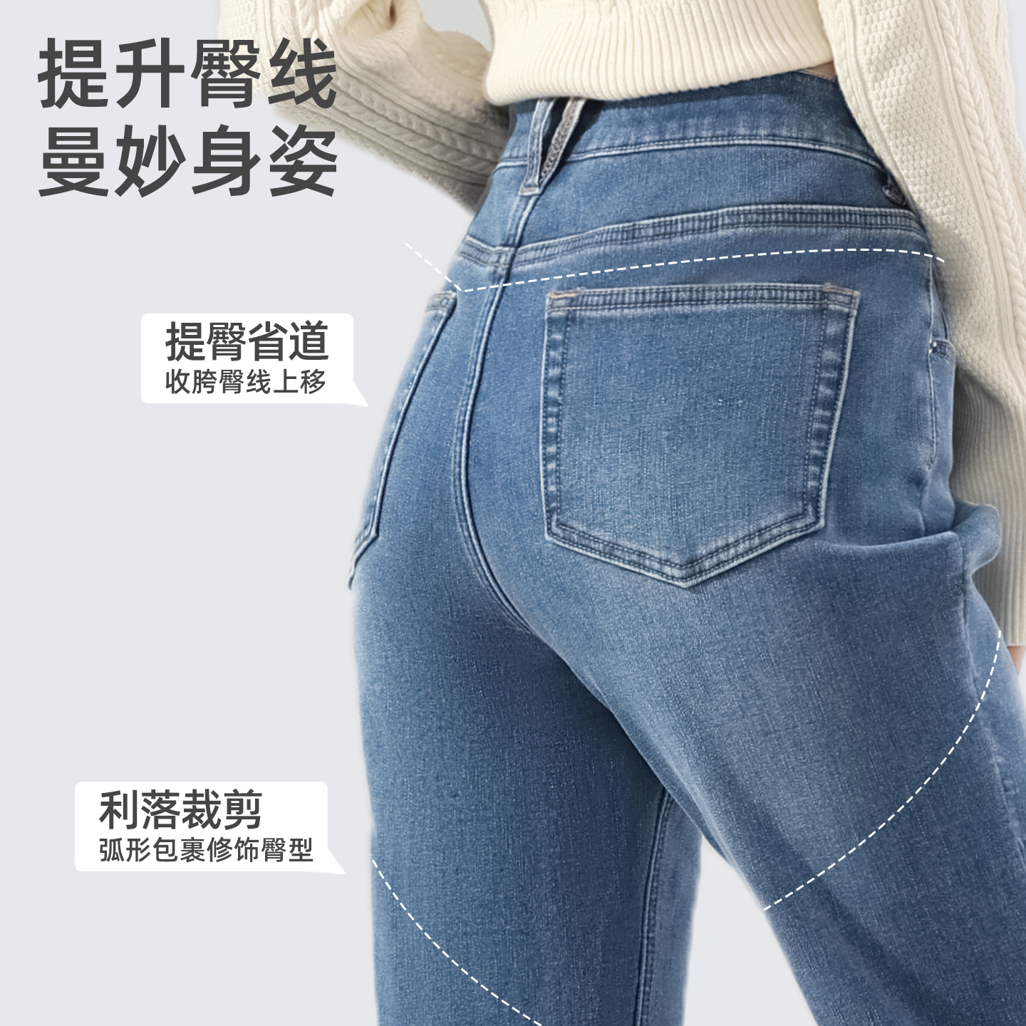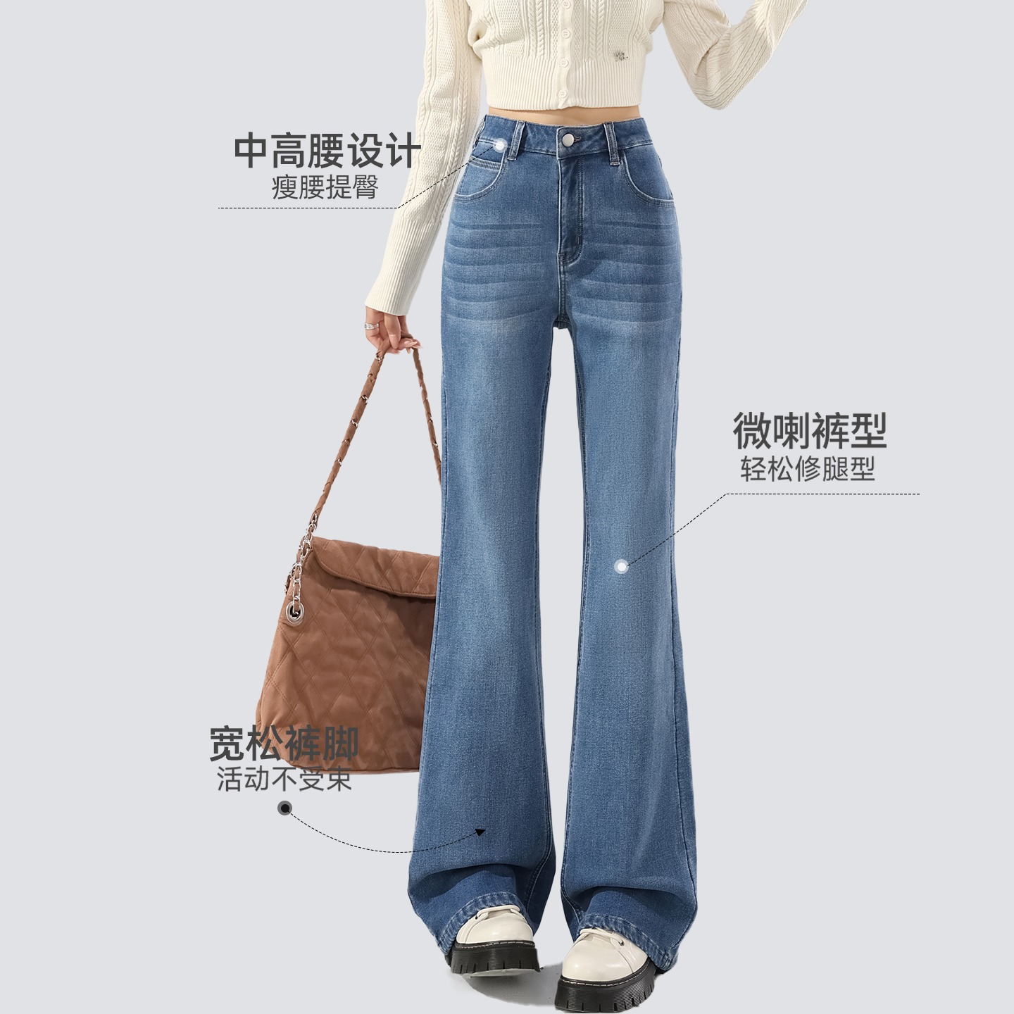 mor加绒微喇牛仔裤 蓝色加厚喇叭裤 女2025新款 子秋冬季 显瘦裤 one